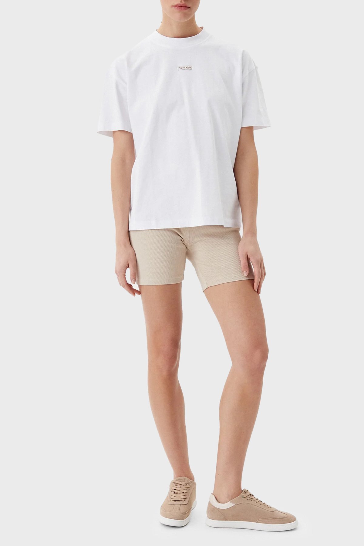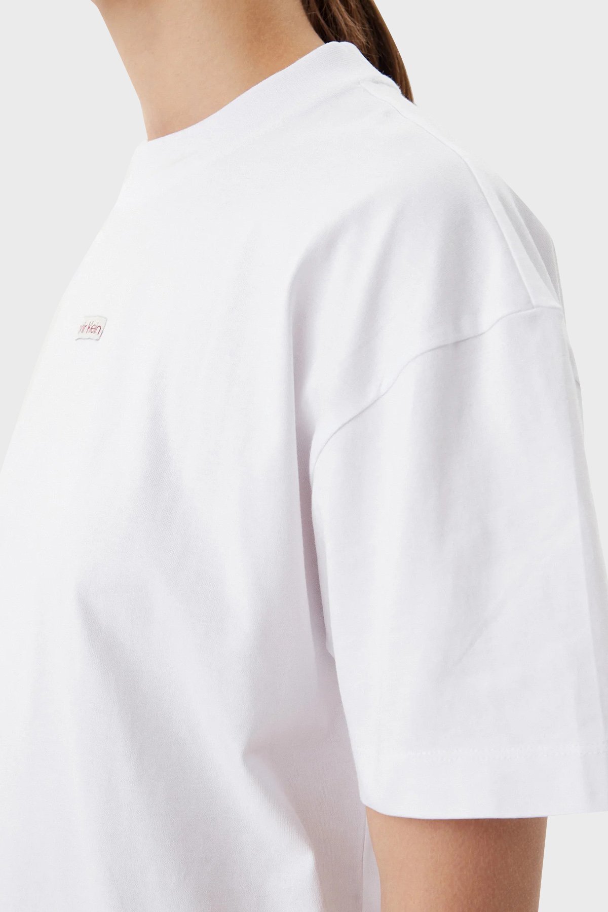 % 100 Pamuk Boyfirend Fit Sıfır Yaka J20J225539YAA Bayan T Shirt J20J225539 YAA BEYAZ