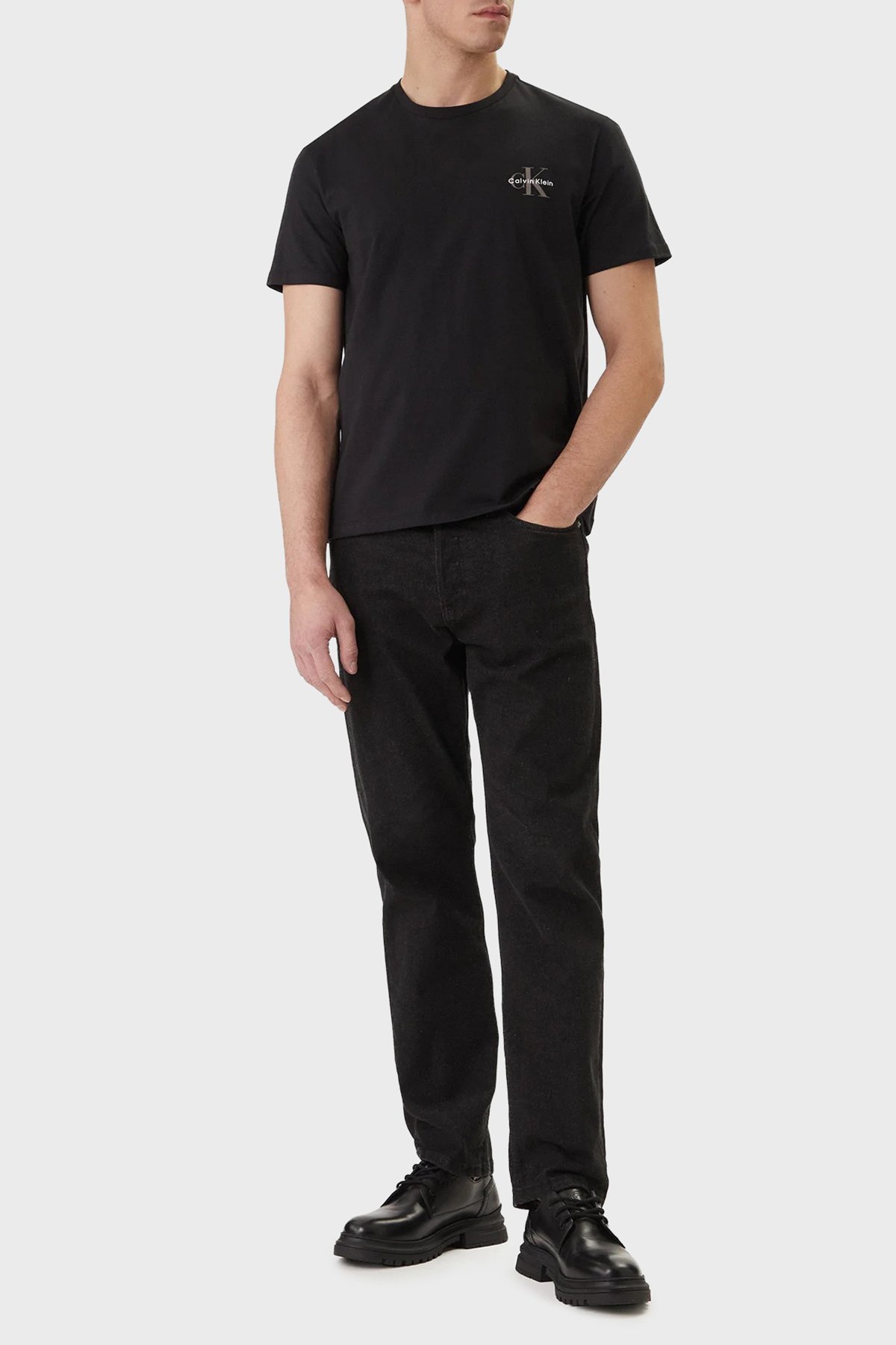 % 100 Pamuk Logolu Bisiklet Yaka Erkek T Shirt LV04RF278G UB1 SİYAH