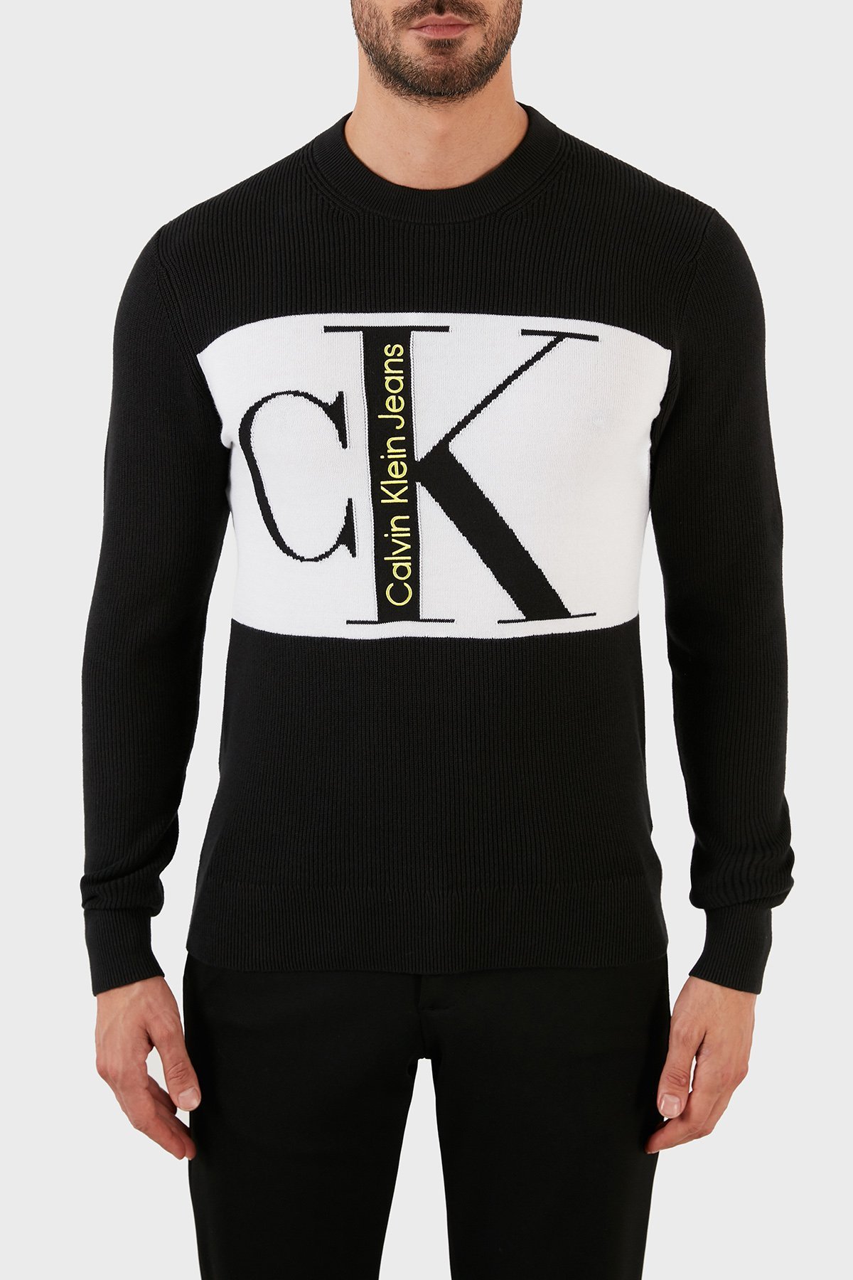 % 100 Pamuk Logolu Regular Fit Bisiklet Yaka Erkek Kazak J30J322203 BEH SİYAH