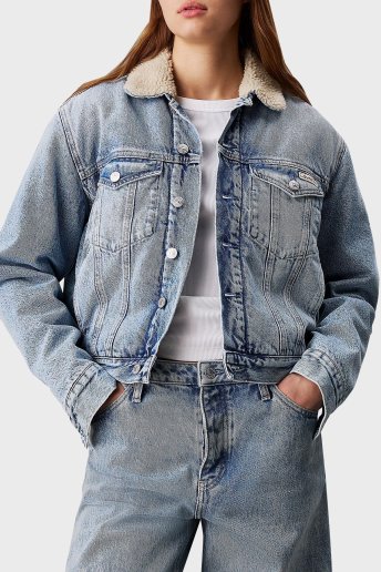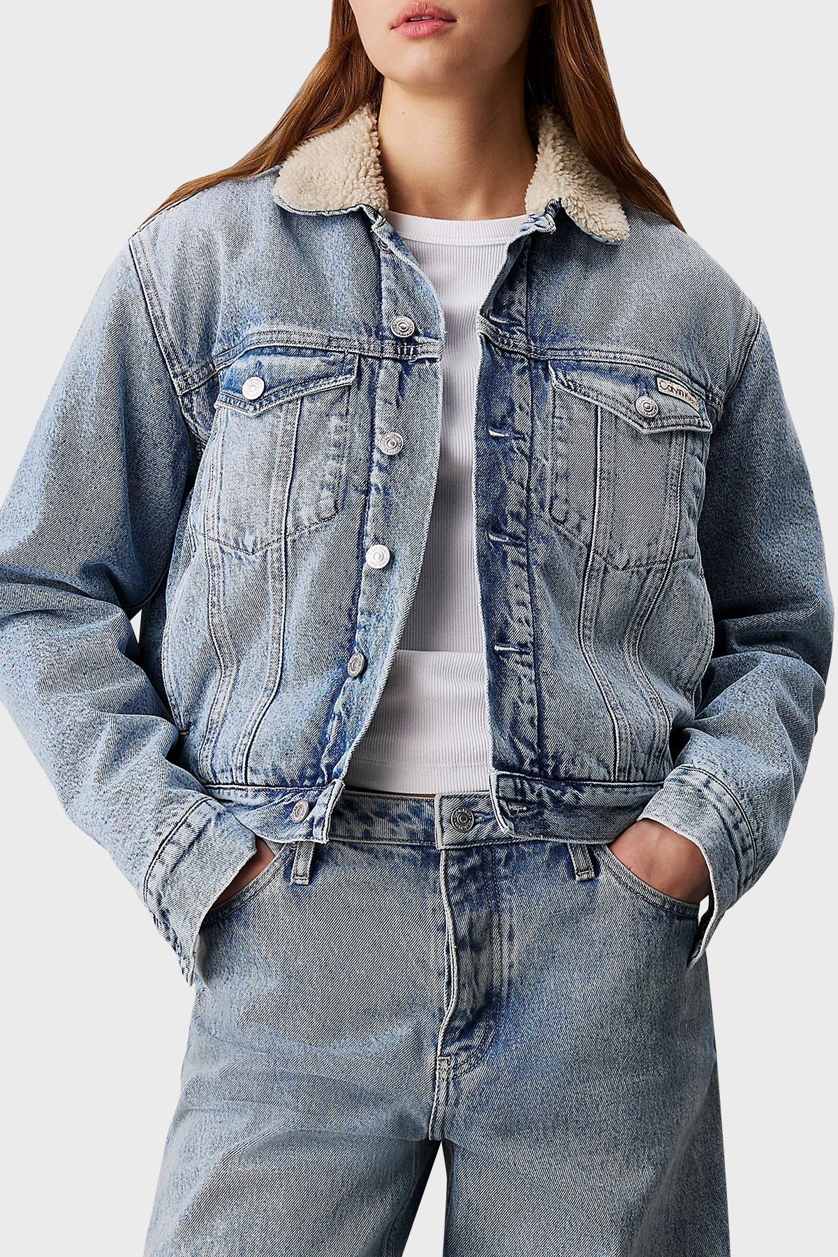 % 100 Pamuk Logolu Regular Fit Kısa J20J2240961A4 Bayan Kot Ceket J20J224096 1A4 AÇIK MAVİ