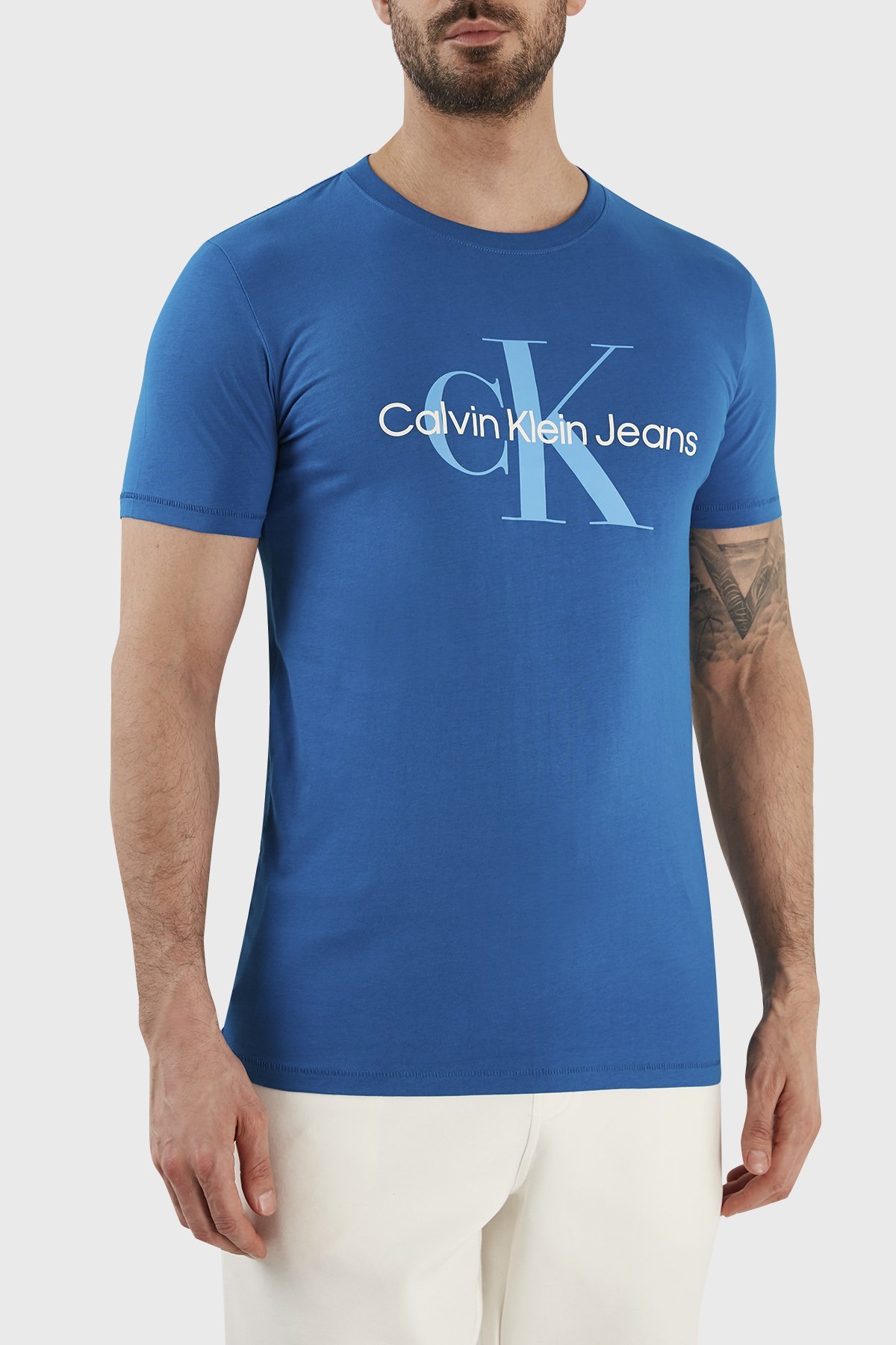 % 100 Pamuk Logolu Slim Fit Bisiklet Yaka J30J320806C3B Erkek T Shirt J30J320806 C3B LACİVERT