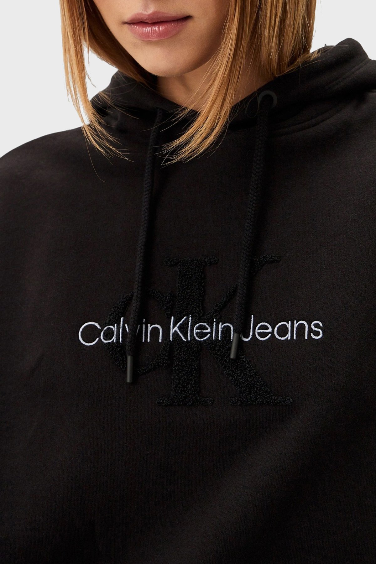 % 100 Pamuk Oversize Fit Kapüşonlu Crop J20J224170BEH Bayan Sweat J20J224170 BEH SİYAH