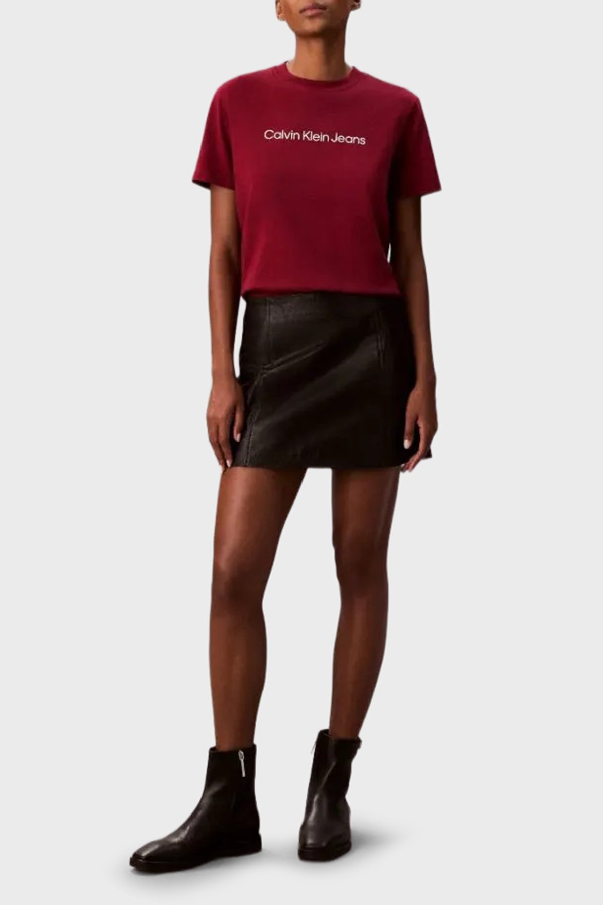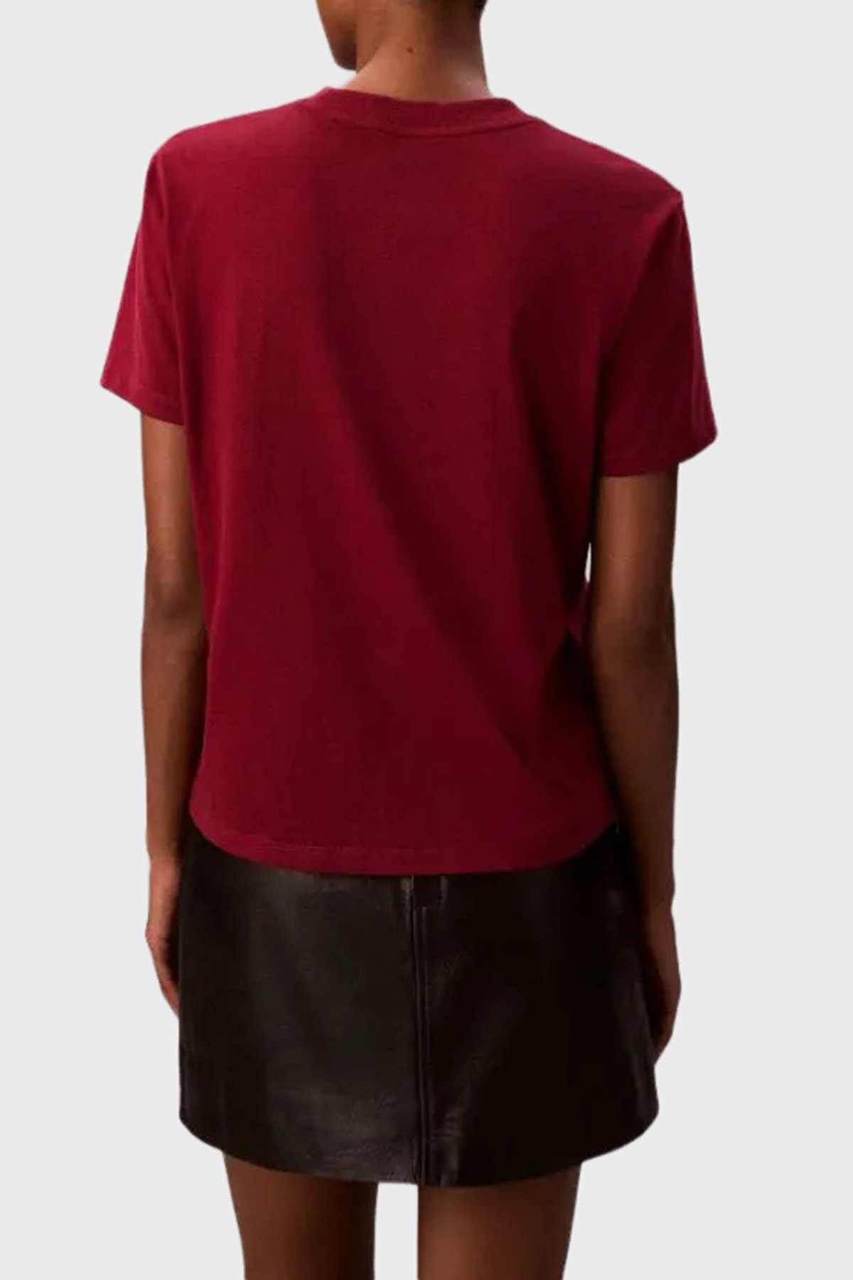% 100 Pamuk Regular Fit Bisiklet Yaka Logolu LV047C912GWFK Bayan T Shirt LV047C912G WFK BORDO