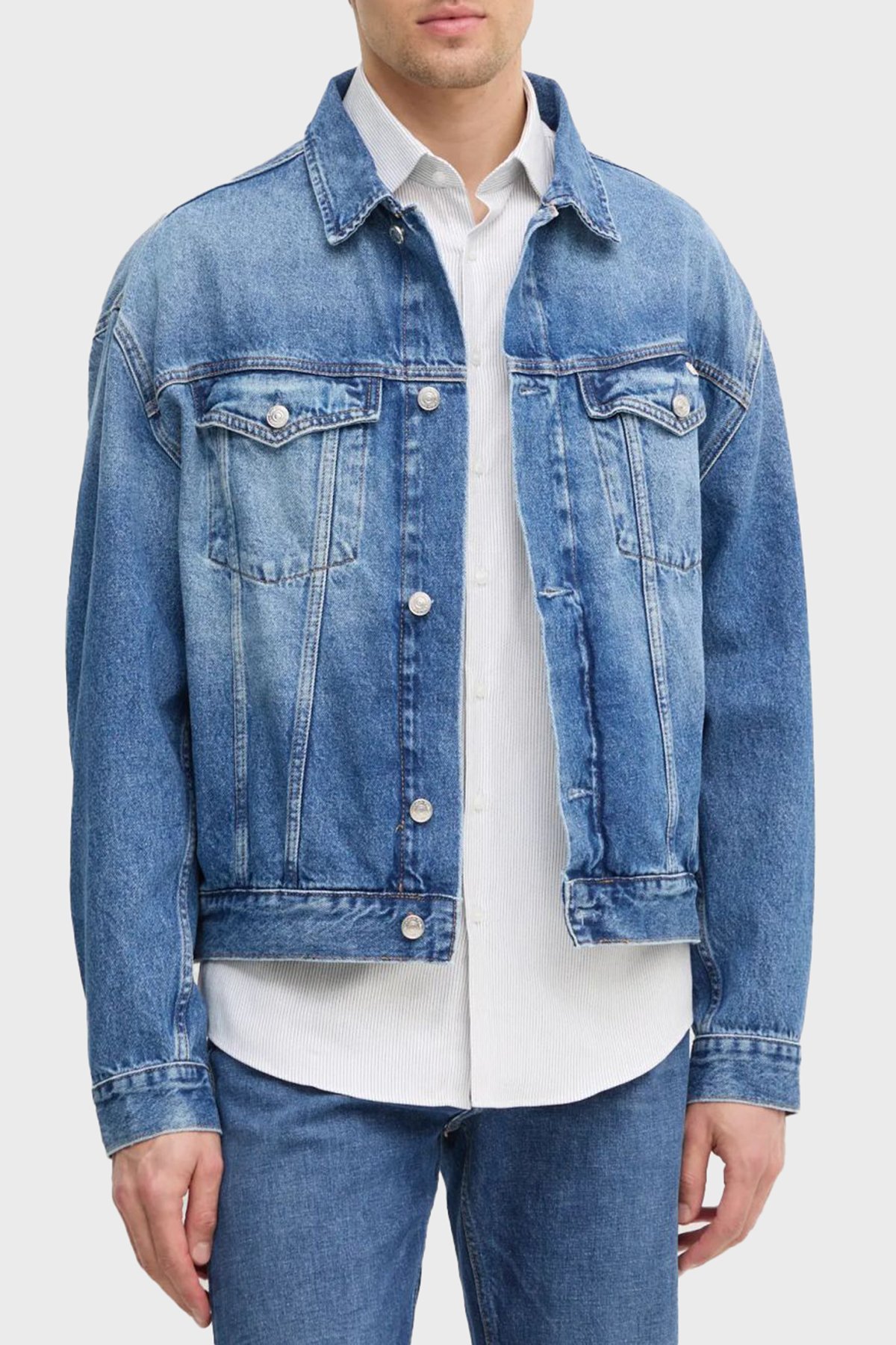 % 100 Pamuk Relaxed Fit J30J3270271A4 Erkek Kot Ceket J30J327027 1A4 MAVİ