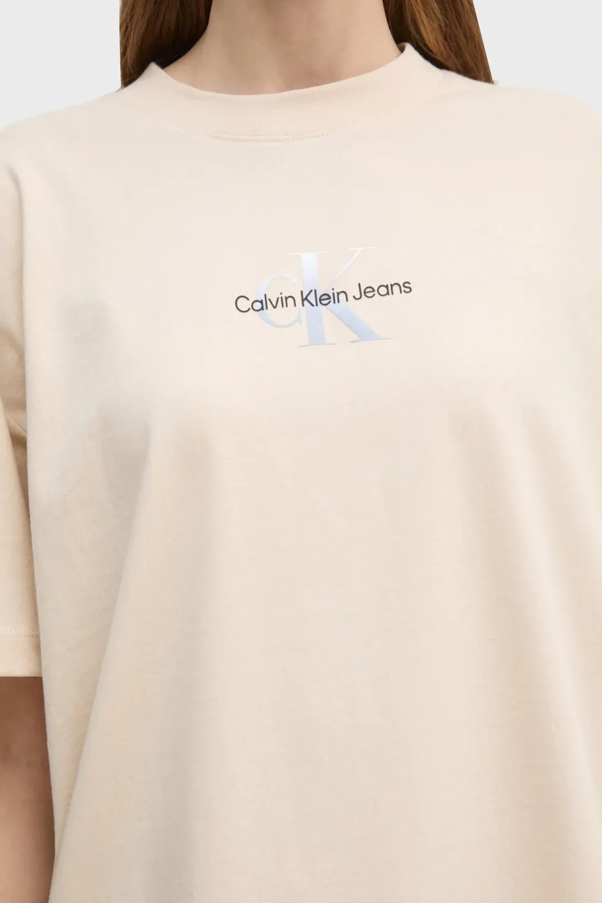 % 100 Pamuk Relaxed Fit Logolu J20J225521AEA Bayan T Shirt J20J225521 AEA BEJ