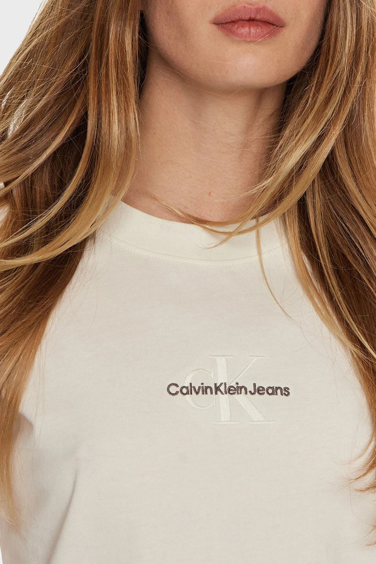 % 100 Pamuk Slim Fit Bisiklet Yaka J20J223563YBI Bayan T Shirt J20J223563 YBI EKRU