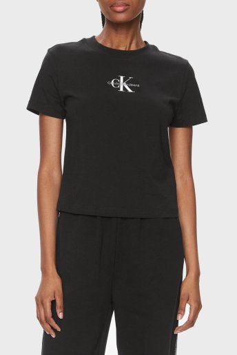 % 100 Pamuk Slim Fit Logolu Crop J20J223113BEH Bayan T Shirt J20J223113 BEH SİYAH