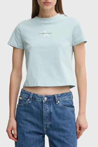 % 100 Pamuk Slim Fit Logolu Crop J20J223113CDV Bayan T Shirt J20J223113 CDV AÇIK MAVİ