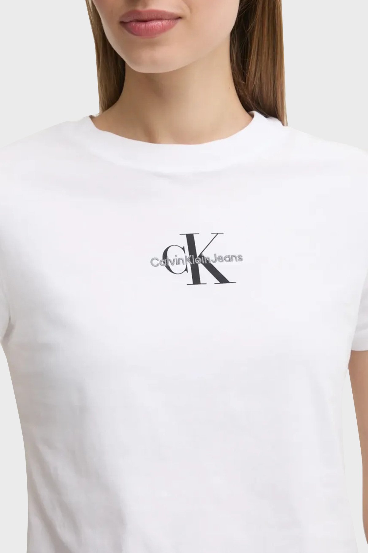 % 100 Pamuk Slim Fit Logolu Crop J20J223113YAA Bayan T Shirt J20J223113 YAA BEYAZ