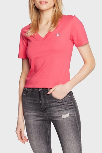 % 100 Pamuk Slim Fit V Yaka J20J220303XI1 Bayan T Shirt J20J220303 XI1 PEMBE