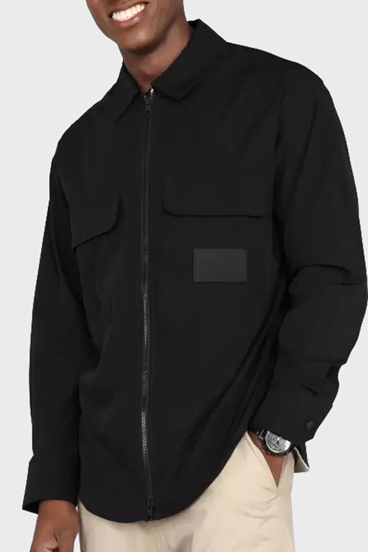 Çift Fermuarlı Çift Cepli Logolu Regular Fit J30J323513BEH Erkek Gömlek J30J323513 BEH SİYAH