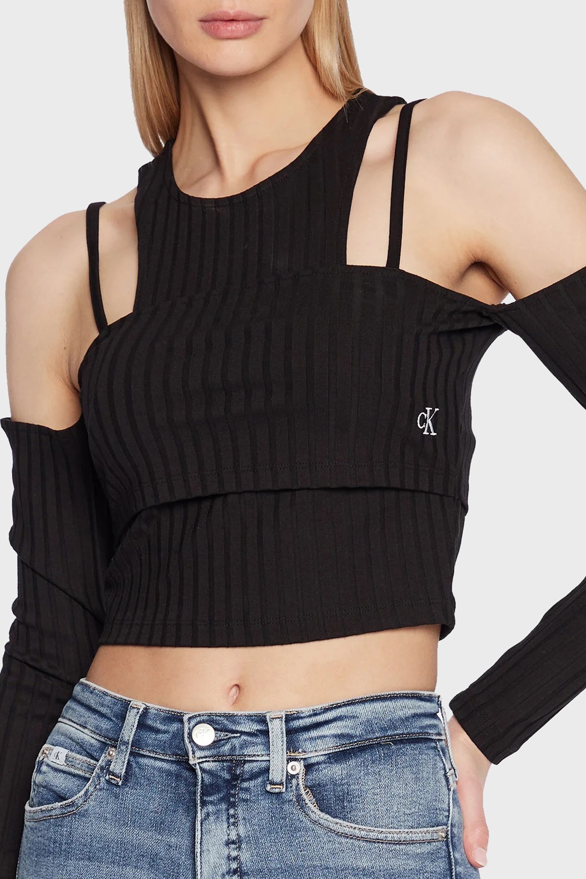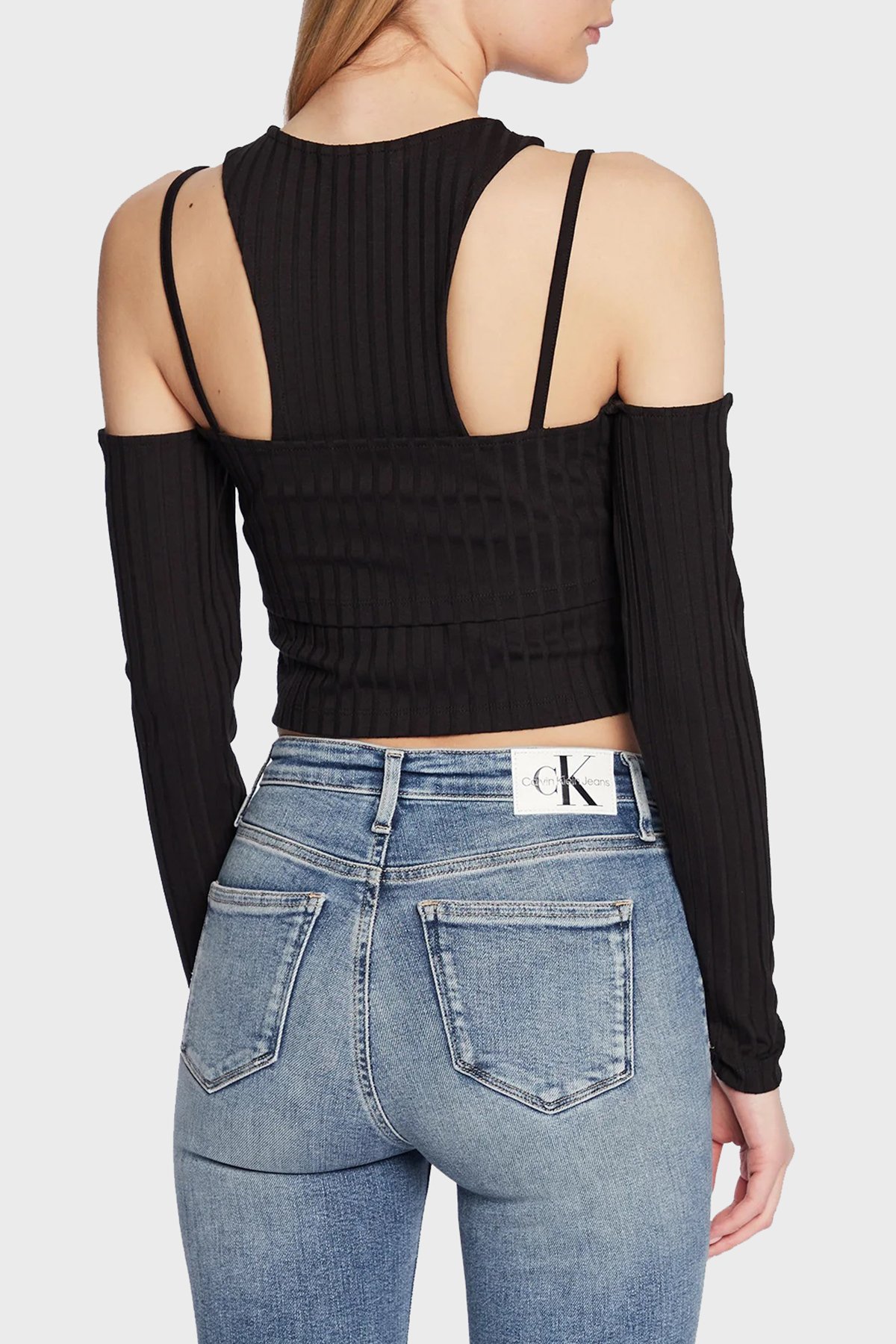 Çift Katmanlı Slim Fit Omzu Açık Streç Crop J20J220775BEH Bayan Top J20J220775 BEH SİYAH