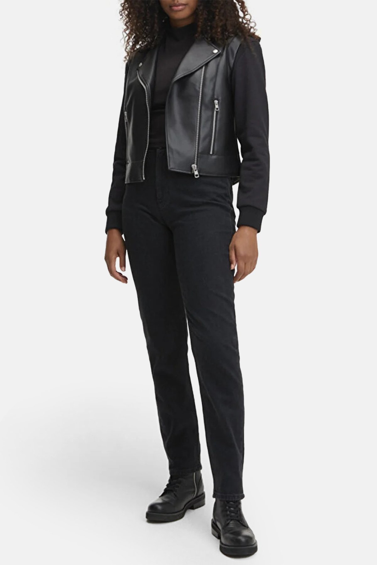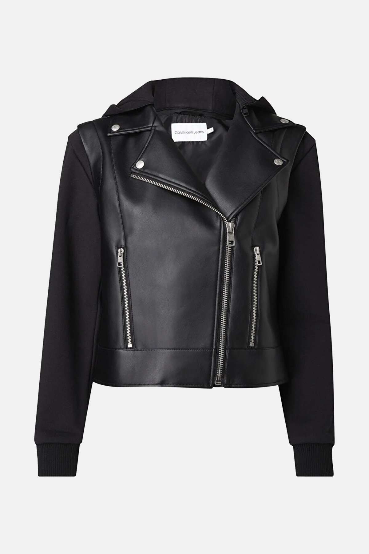 Çıkarılabilir Kapüşonlu Fermuarlı Regular Fit Faux J20J221384BEH Bayan Deri Ceket J20J221384 BEH SİYAH