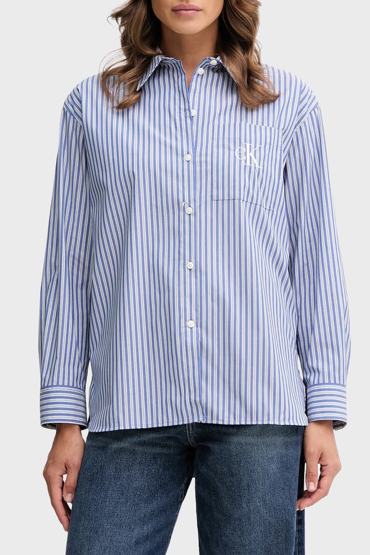 Çizgili Pamuklu Relaxed Fit Uzun Kollu LV044D170GZNX Bayan Gömlek LV044D170G ZNX LACİVERT