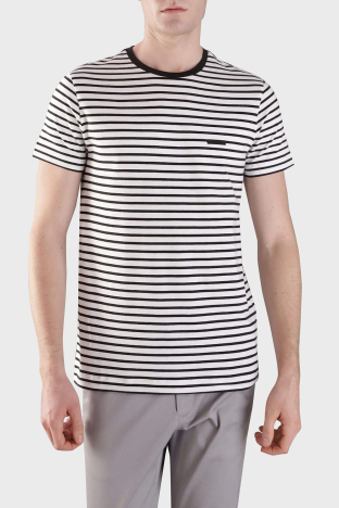 Çizgili Pamuklu Slim Fit Bisiklet Yaka K10K1141770K7 Erkek T Shirt K10K114177 0K7 BEYAZ-SİYAH