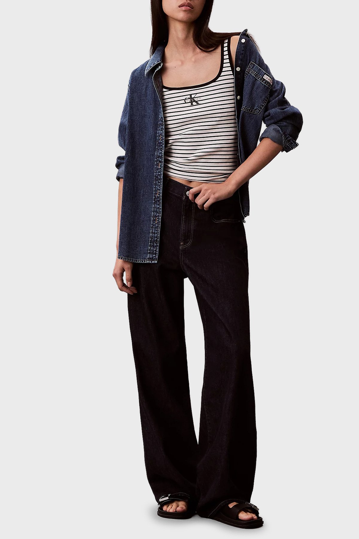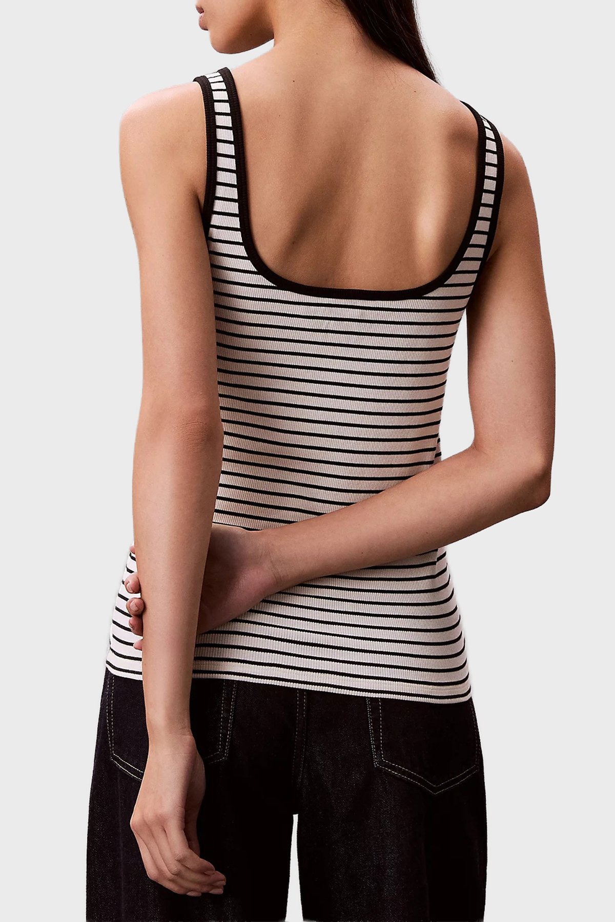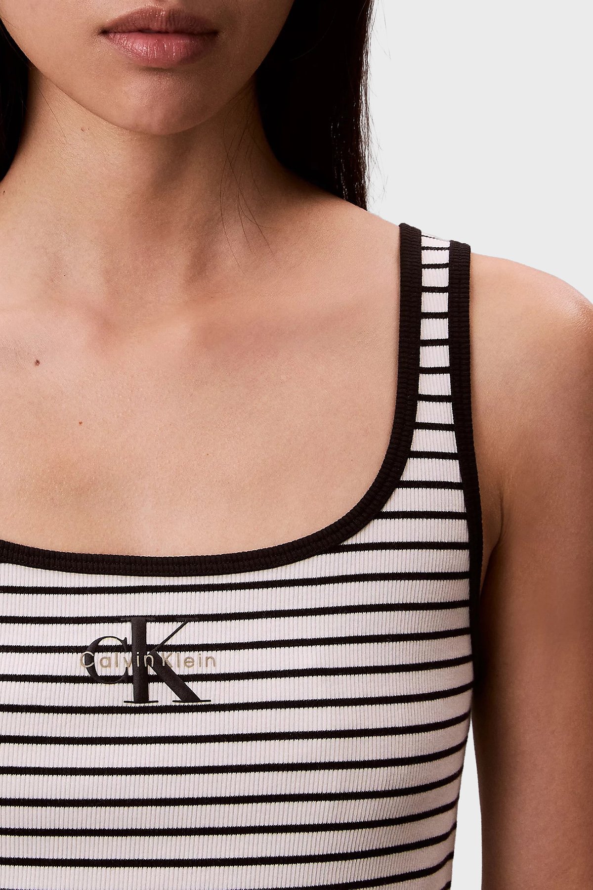 Çizgili Pamuklu Slim Fit Yuvarlak Yaka Kolsuz LV047F832GXDY Kadın T Shirt LV047F832G XDY SİYAH BEYAZ