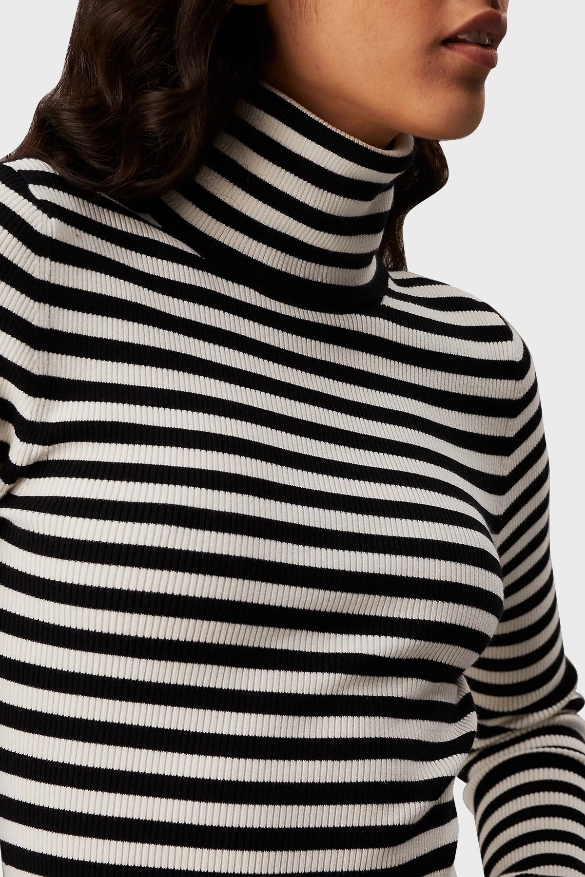 Çizgili Slim Fit Balıkçı Yaka Mini J20J224150YBI Bayan Elbise J20J224150 YBI BEYAZ-SİYAH