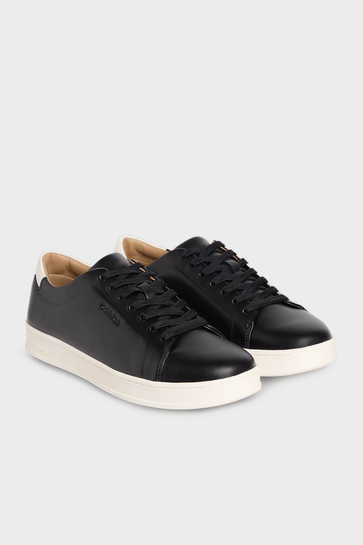 Deri Logolu Sneaker HM0HM018590GK Erkek Ayakkabı HM0HM01859 0GK SİYAH-EKRU