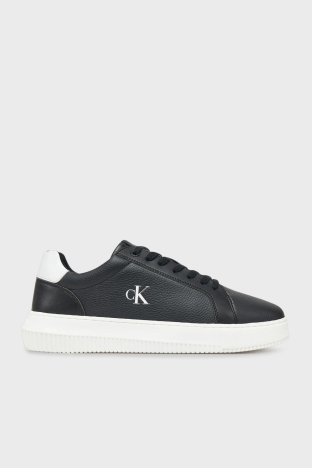 Deri Logolu Sneaker YM0YM011980GN Erkek Ayakkabı YM0YM01198 0GN SİYAH-BEYAZ