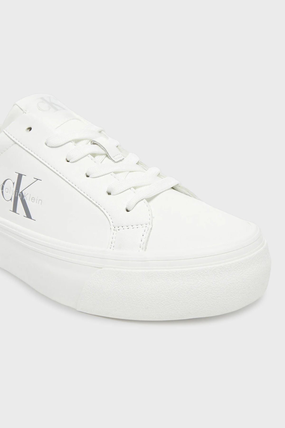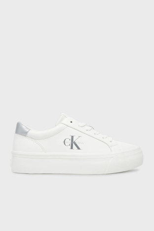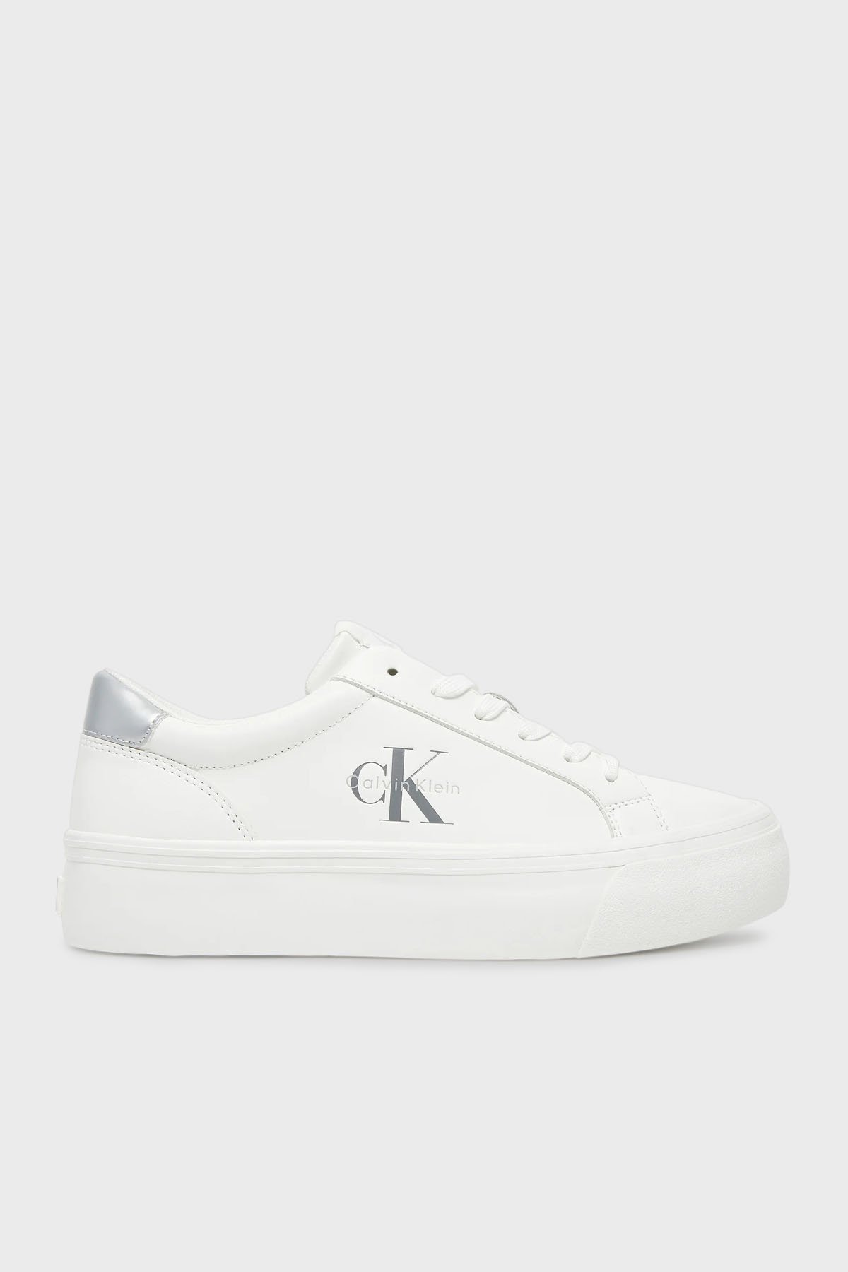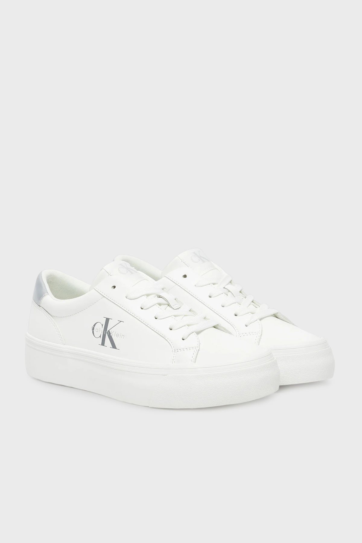 Deri Logolu Sneaker YW0YW0187702R Bayan Ayakkabı YW0YW01877 02R BEYAZ-GÜMÜŞ