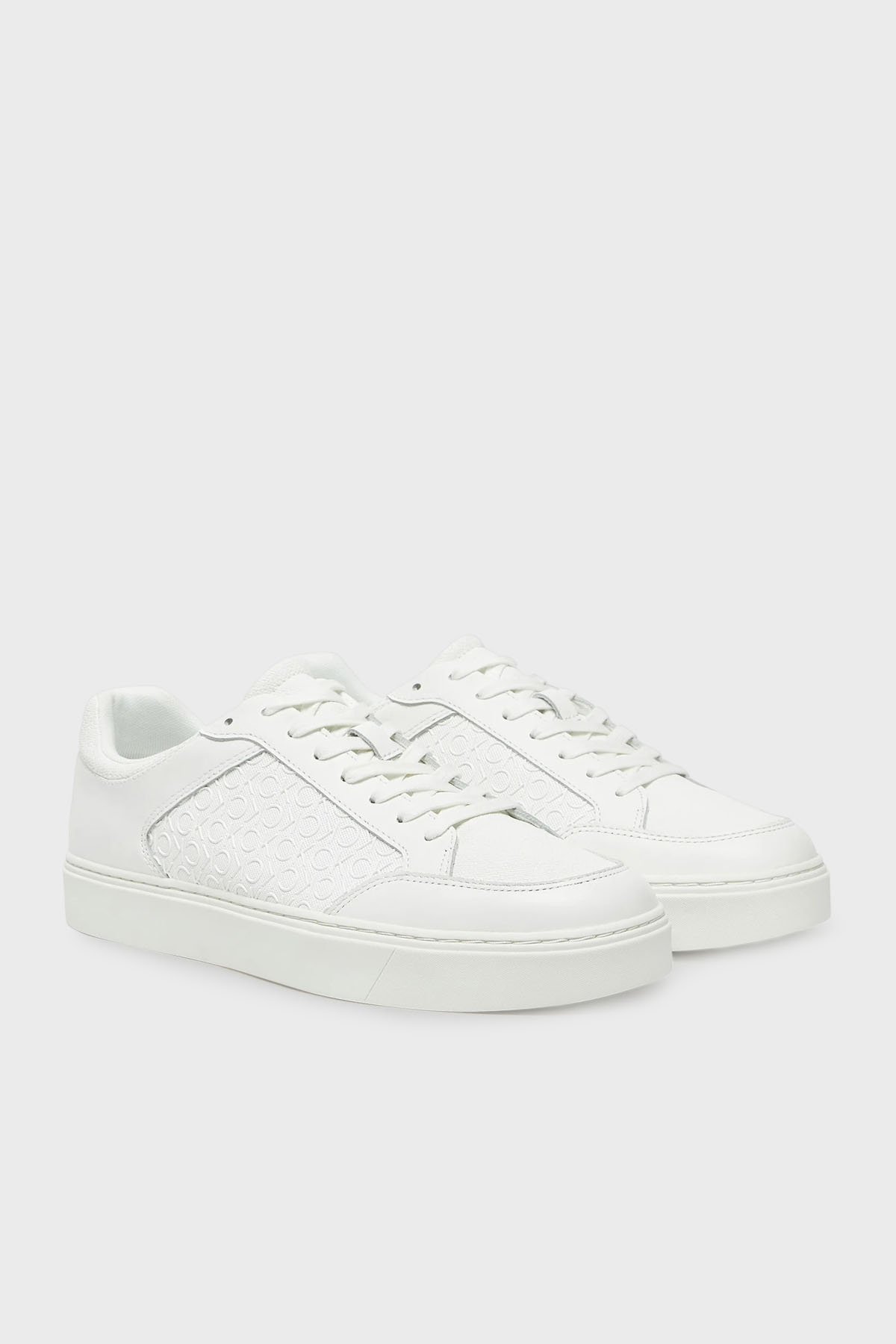 Deri Monogram Logo Baskılı Sneaker HM0HM018990K4 Erkek Ayakkabı HM0HM01899 0K4 BEYAZ