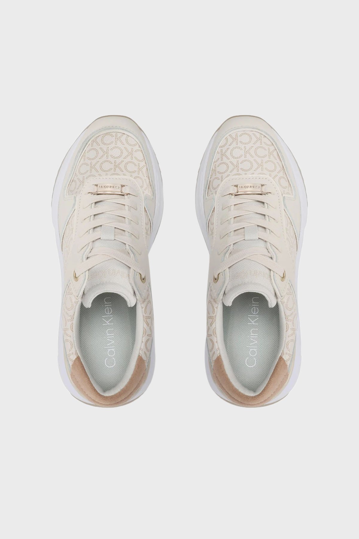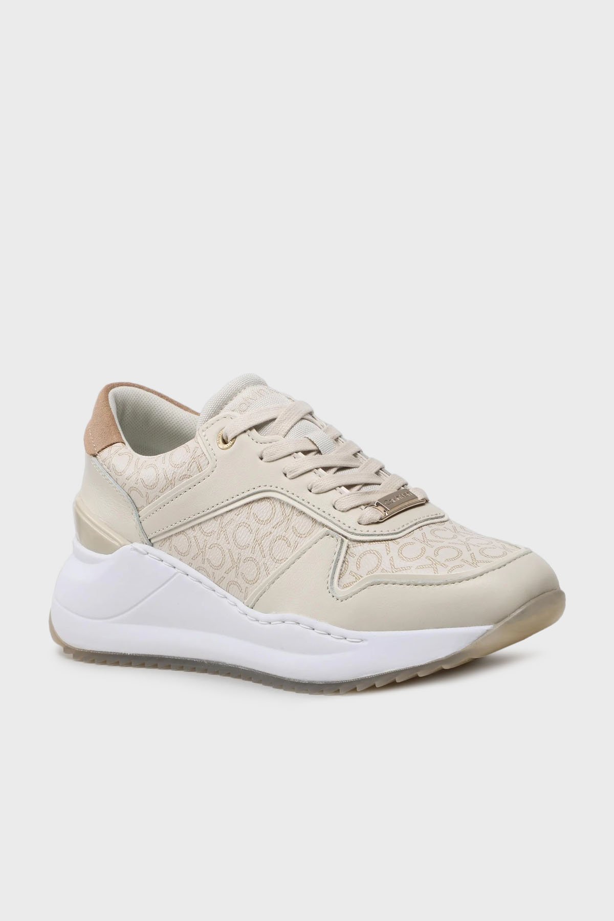 Logolu Kalın Tabanlı Deri Sneaker HW0HW014390F7 Bayan Ayakkabı HW0HW01439 0F7 EKRU