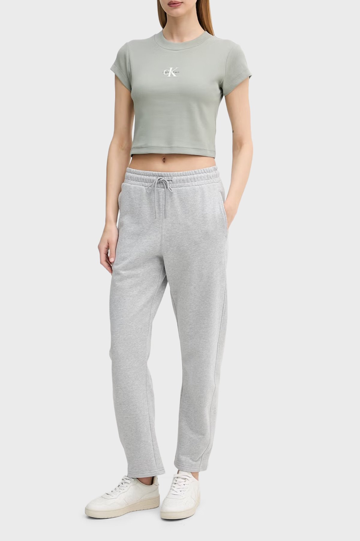 Fitilli Pamuklu Slim Fit Bisiklet Yaka Crop LV047AB802PEZ Kadın T Shirt LV047AB802 PEZ HAKİ