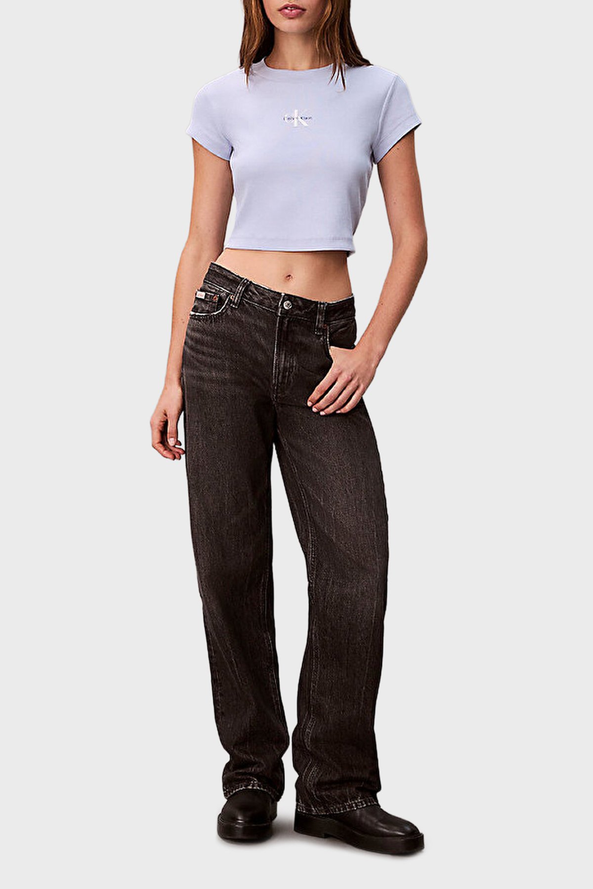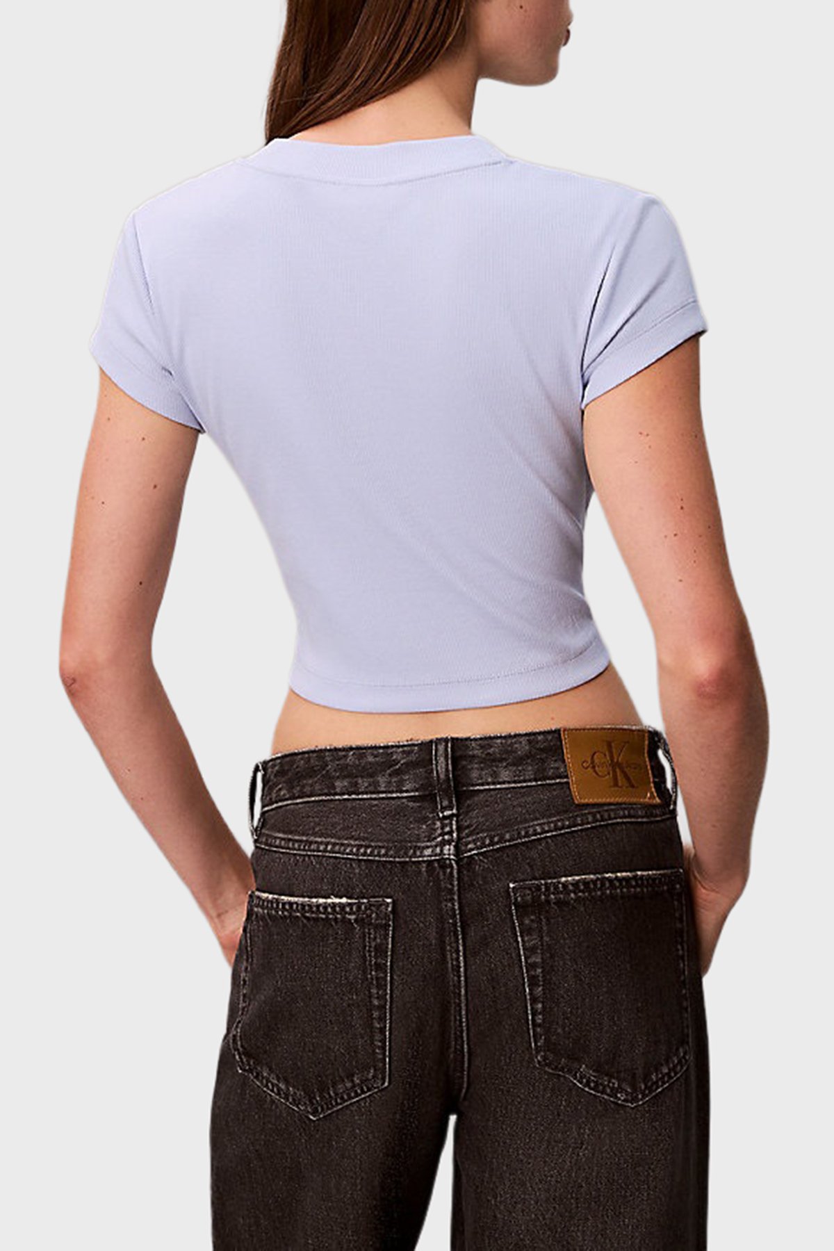 Fitilli Pamuklu Slim Fit Bisiklet Yaka Crop LV047AB802TKF Bayan T Shirt LV047AB802 TKF MAVİ