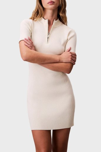 Fitilli Slim Fit Yarım Fermuarlı Dik Yaka Mini Boy LV044C330GYAS Bayan Elbise LV044C330G YAS EKRU