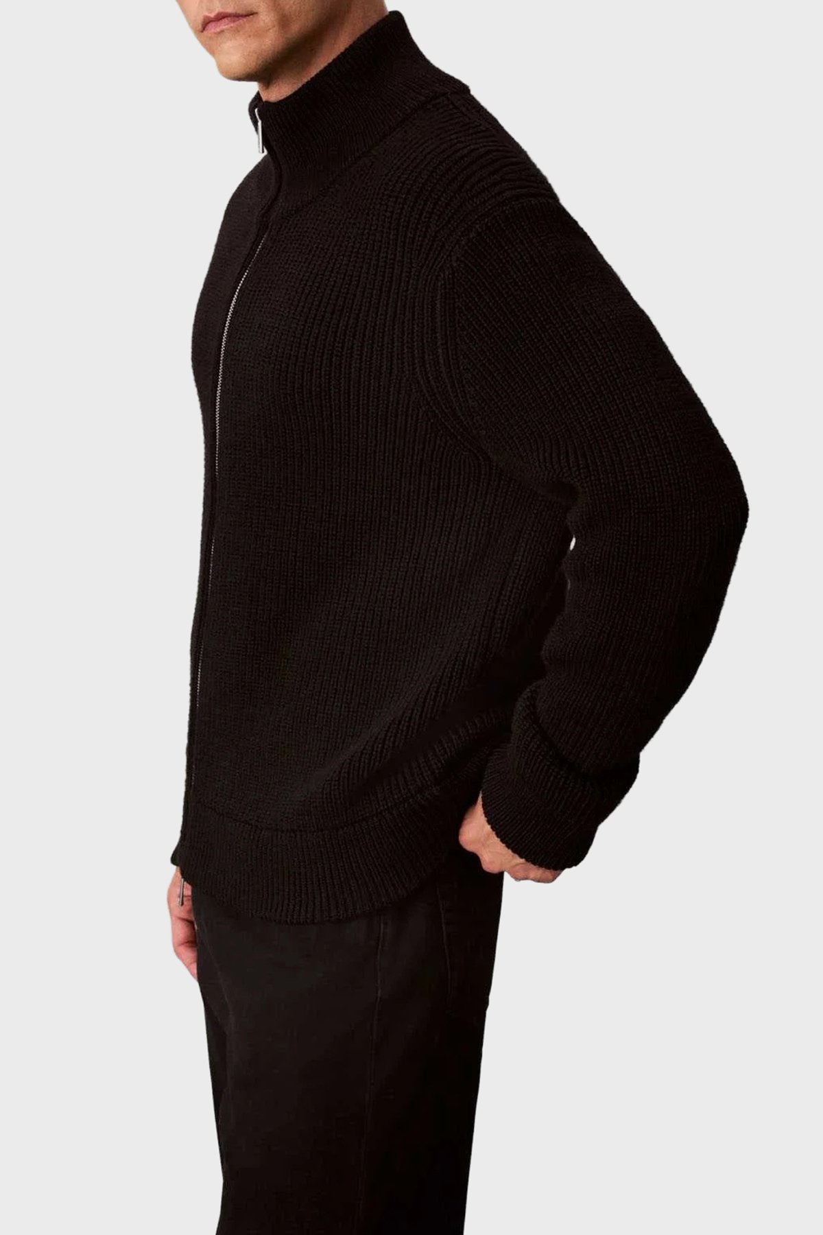 Fitilli Yün Karışımlı Regular Fit Dik Yaka Fermuarlı LV04LD305GUB1 Erkek Hırka LV04LD305G UB1 SİYAH