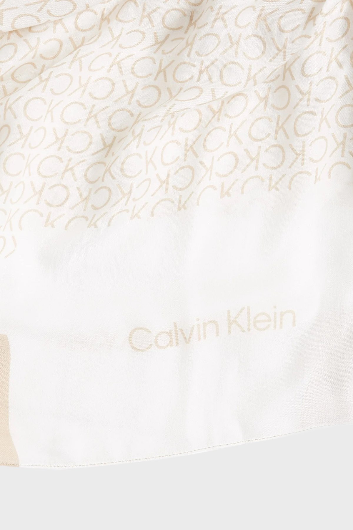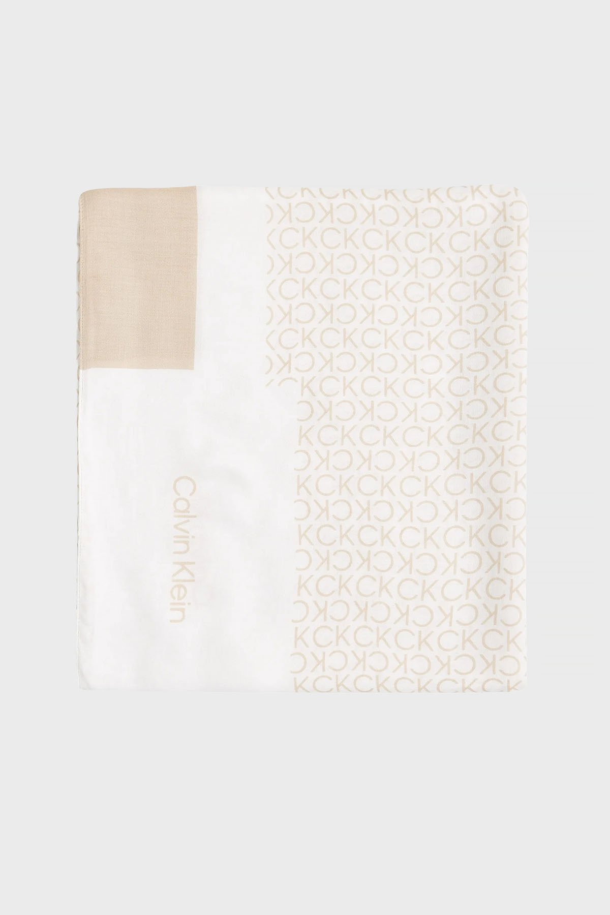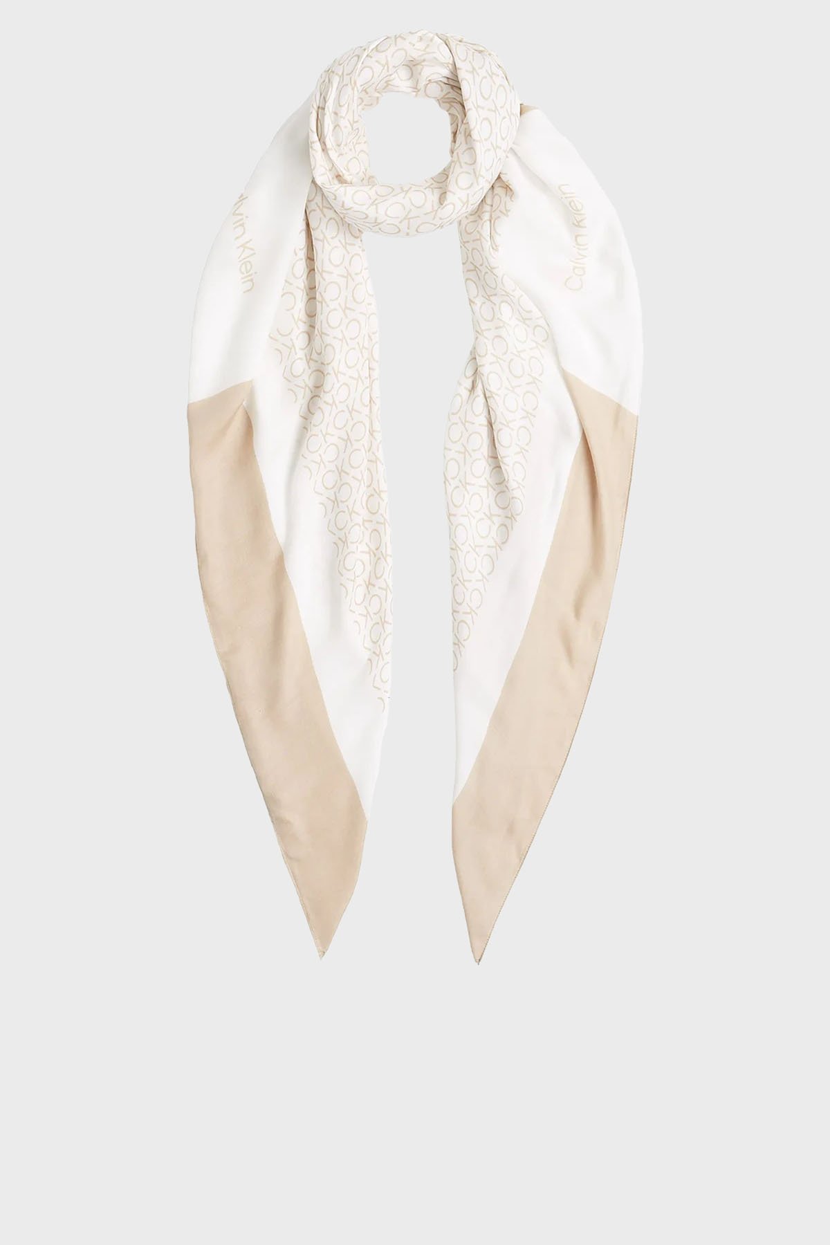 Jakarlı Logo Baskılı 130 x 130 cm K60K612706PBP Bayan Şal K60K612706 PBP BEYAZ-BEJ
