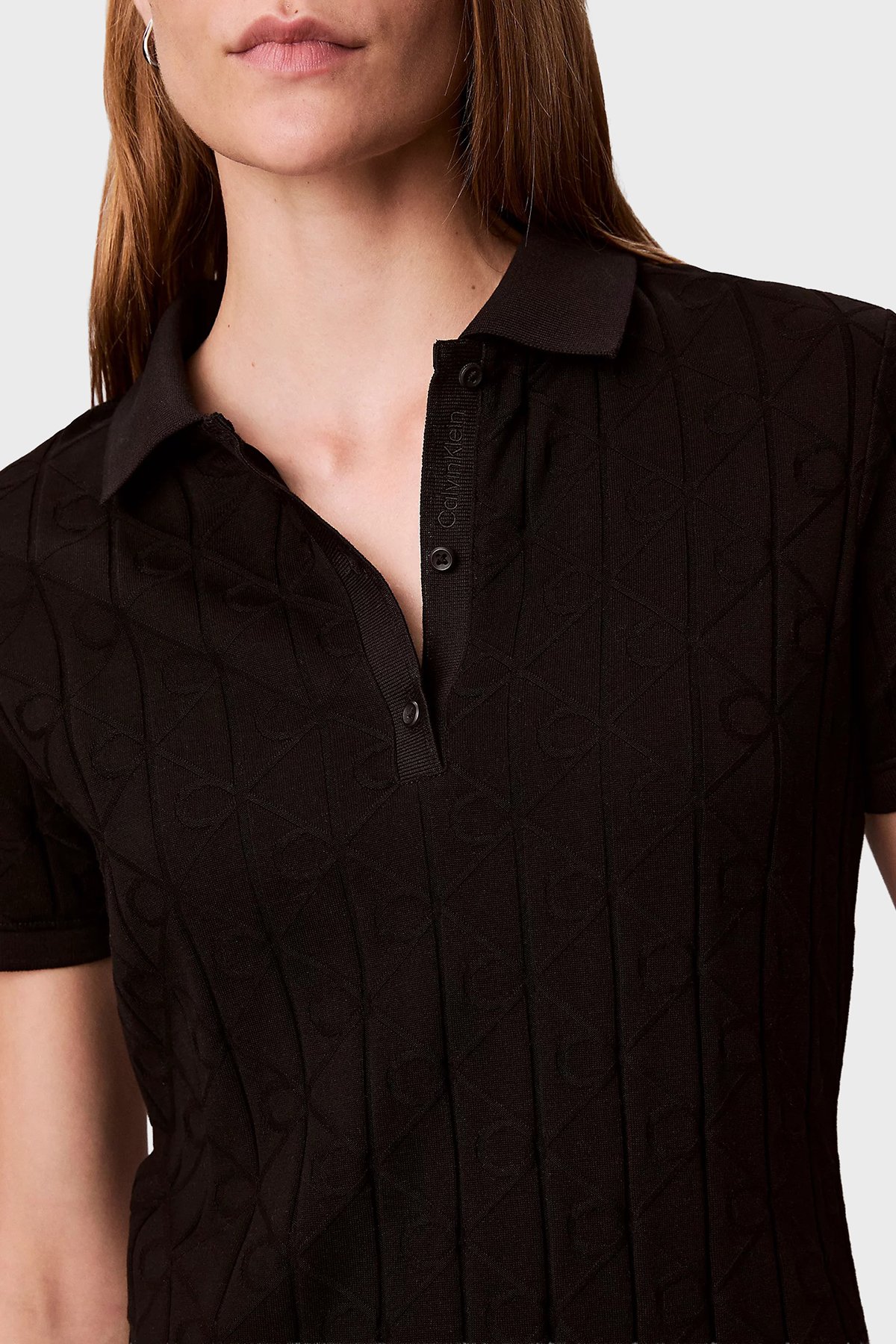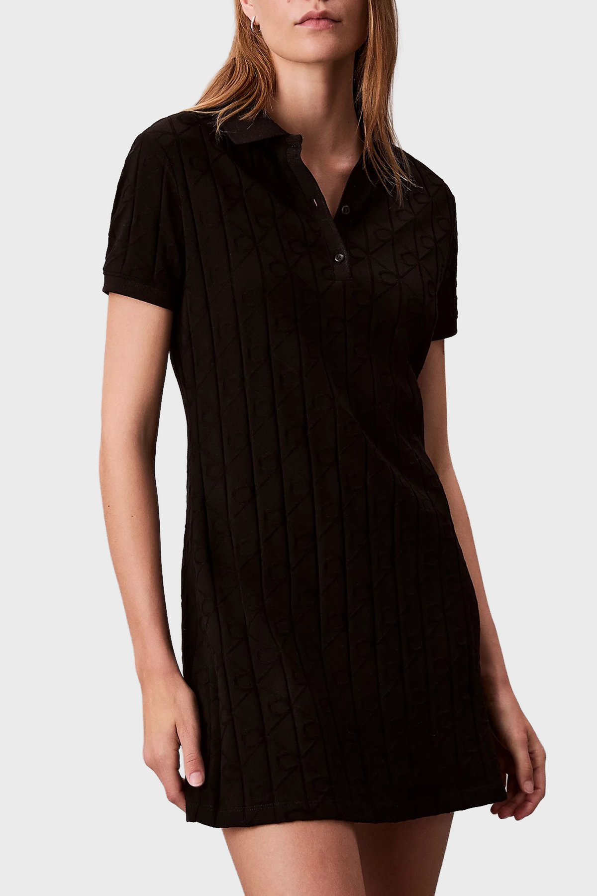 Jakarlı Pamuklu Fitted Fit Mini Polo Yaka LV044D208GUB1 Bayan Elbise LV044D208G UB1 SİYAH