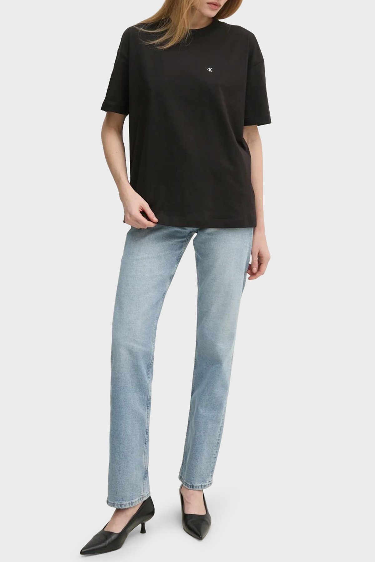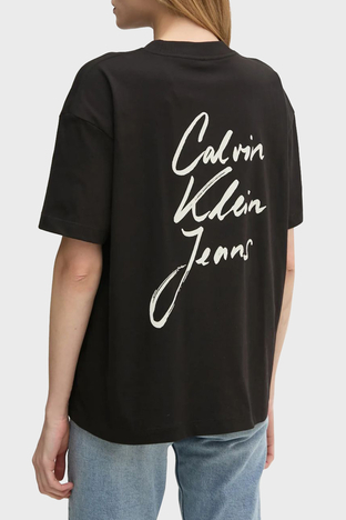 Logo Baskılı % 100 Pamuk Relaxed Fit Bisiklet Yaka J20J225113BEH Bayan T Shirt J20J225113 BEH SİYAH