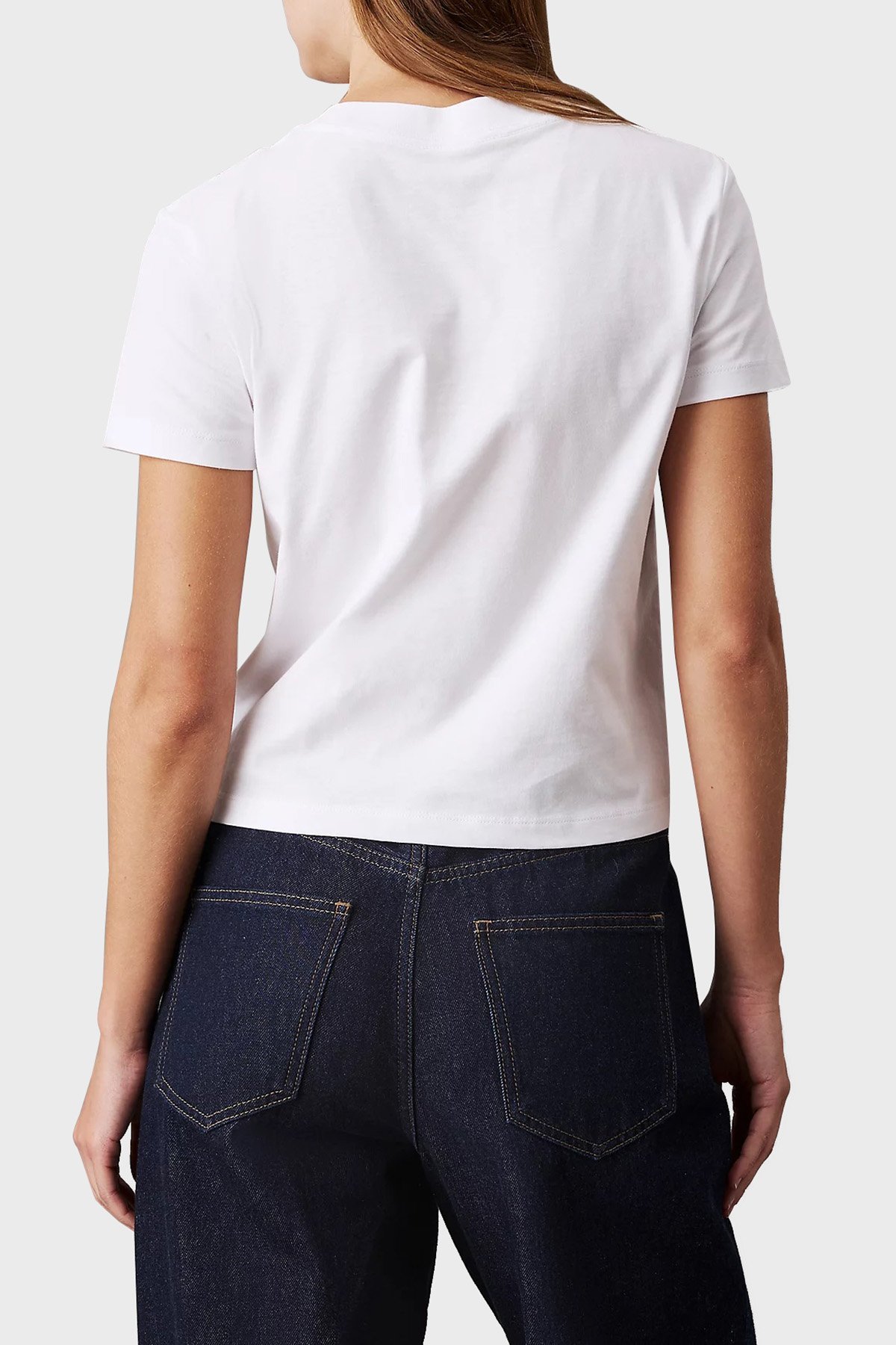 Logo Baskılı Pamuklu Loose Fit Bisiklet Yaka Crop J20J224984YAF Bayan T Shirt J20J224984 YAF BEYAZ