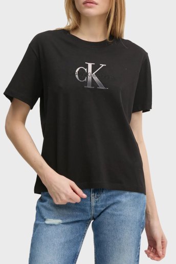 Logo Baskılı Pamuklu Relaxed Fit Bisiklet Yaka J20J224798BEH Bayan T Shirt J20J224798 BEH SİYAH