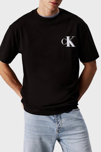 Logo Baskılı Pamuklu Relaxed Fit Bisiklet Yaka J30J327475BEH Erkek T Shirt J30J327475 BEH SİYAH