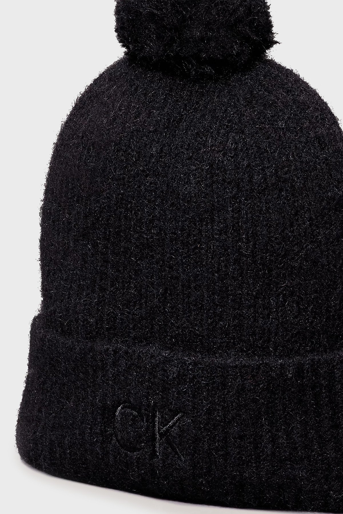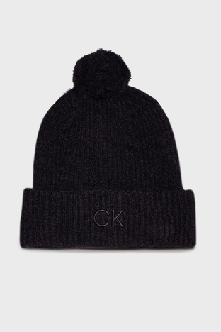 Logo İşlemeli Yumuşak Ponponlu Örgü K60K612586BEH Bayan Bere K60K612586 BEH SİYAH