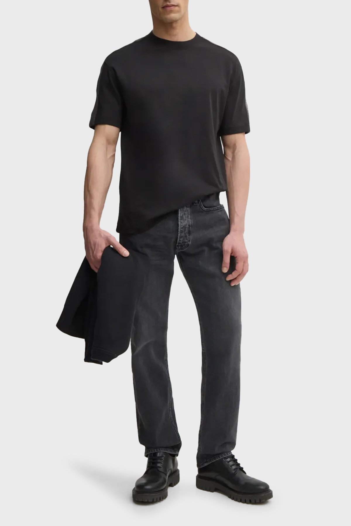 Logo Nakışlı % 100 Pamuk Relaxed Fit Bisiklet Yaka J30J327237BEH Erkek T Shirt J30J327237 BEH SİYAH