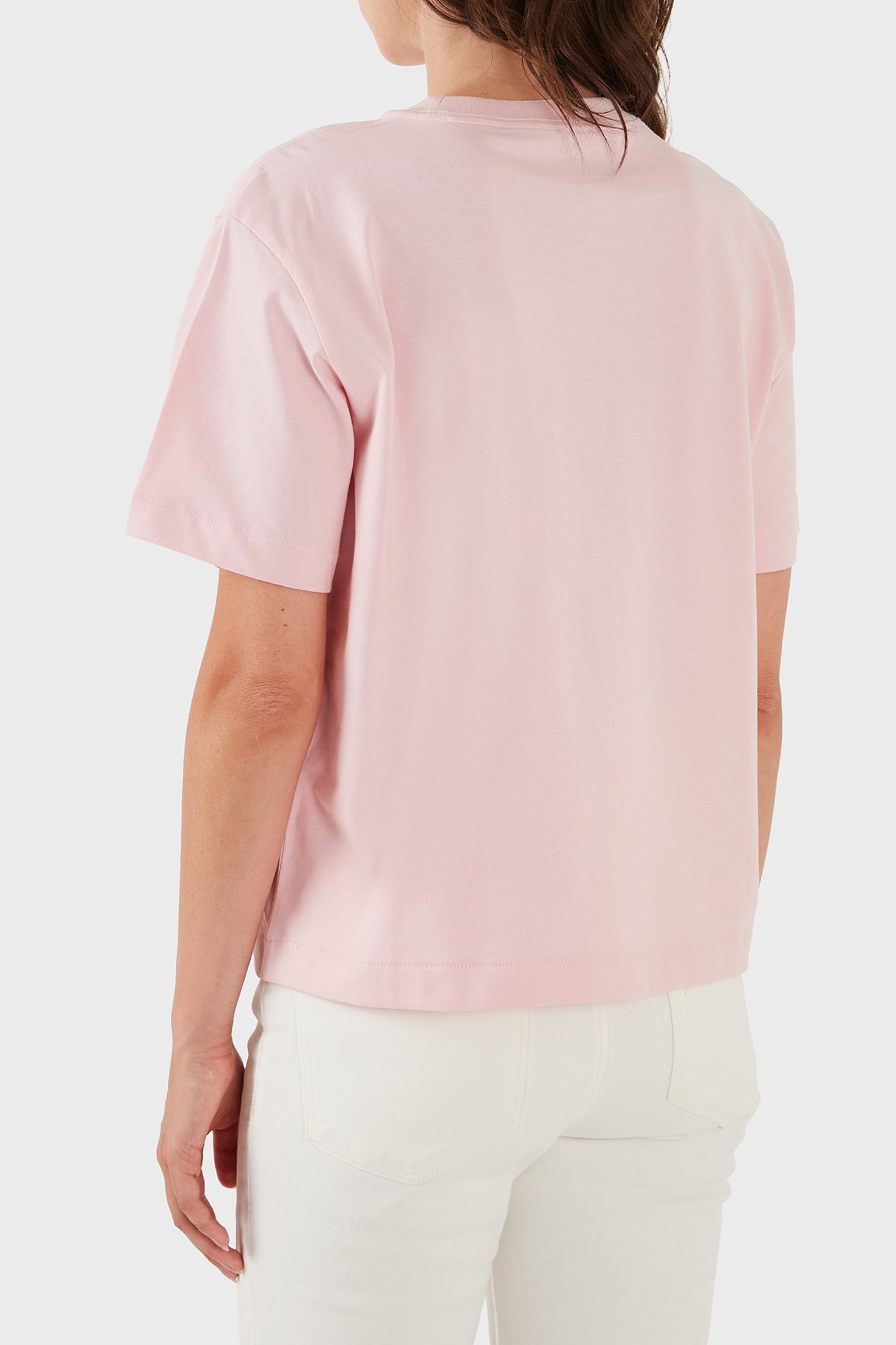 Logolu % 100 Pamuk Boxy Fit Bisiklet Yaka LV047C858GW0S Bayan T Shirt LV047C858G W0S PEMBE