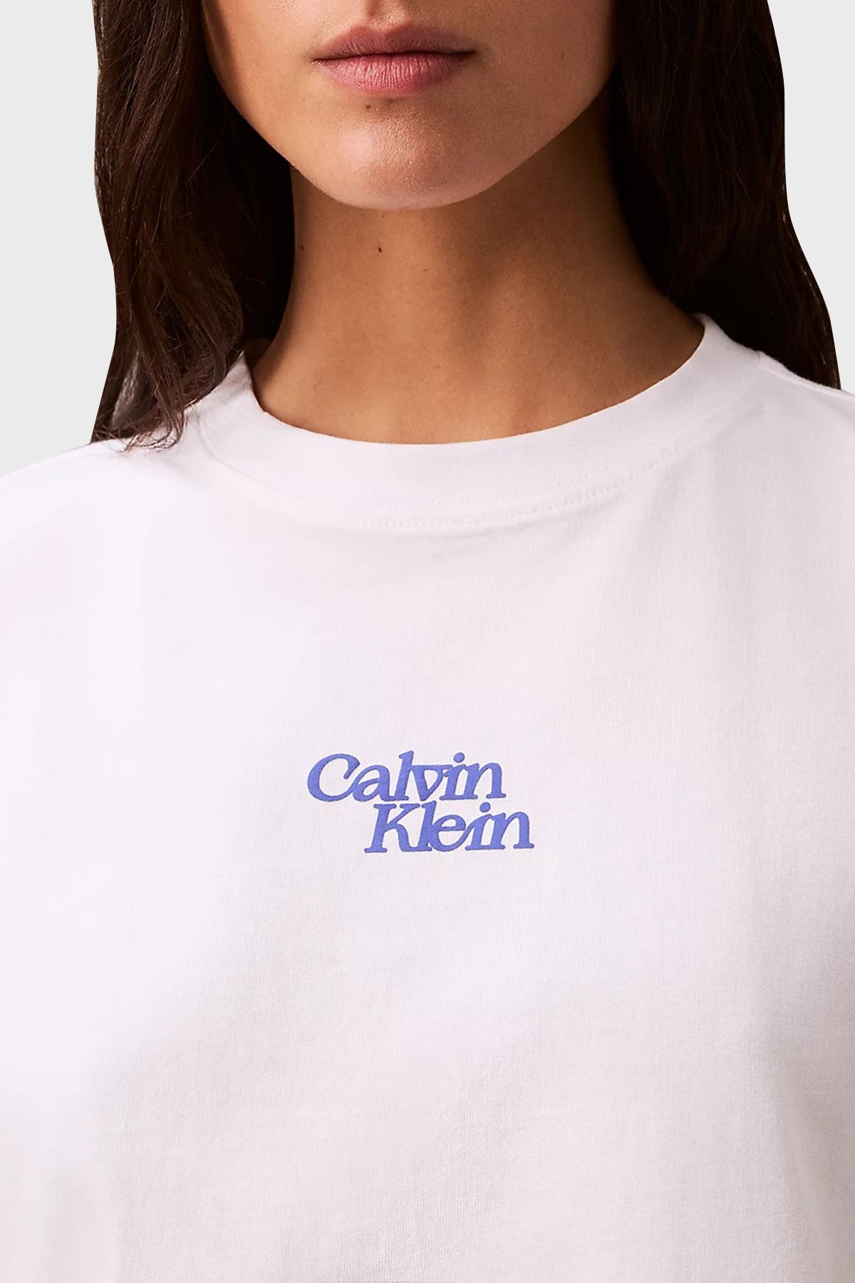 Logolu % 100 Pamuk Regular Fit Bisiklet Yaka LV047B851GYAA Bayan T Shirt LV047B851G YAA BEYAZ