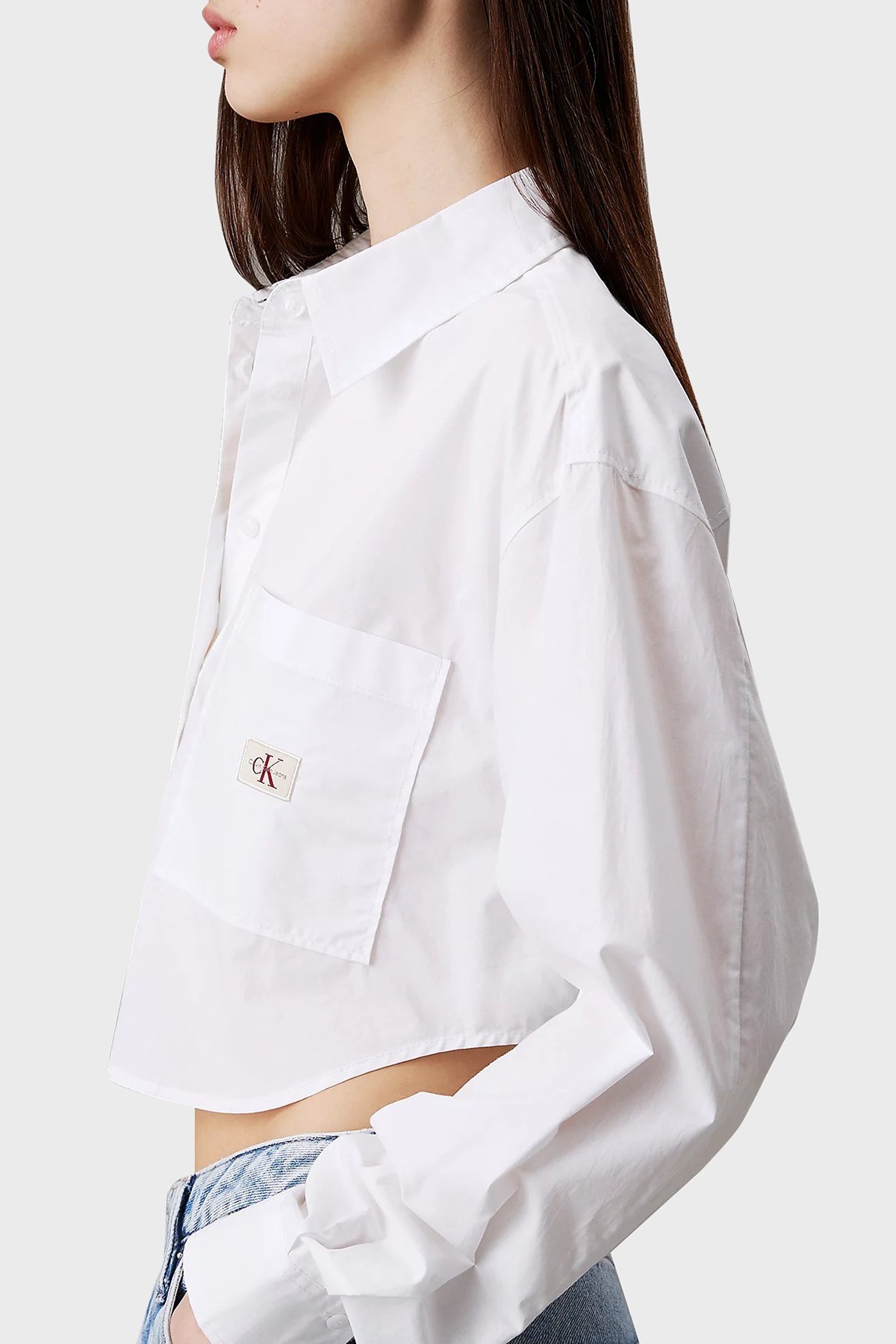Logolu % 100 Pamuk Regular Fit Crop J20J225078YAF Bayan Gömlek J20J225078 YAF BEYAZ