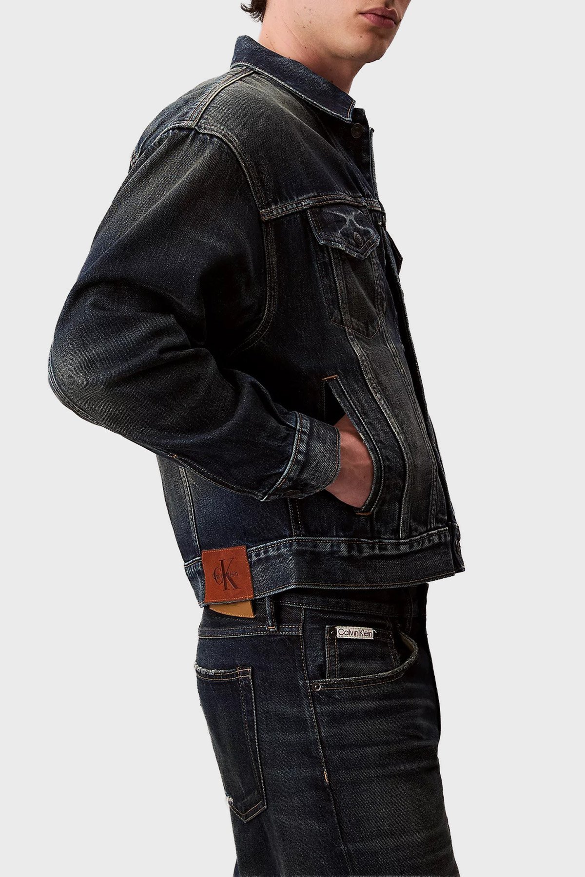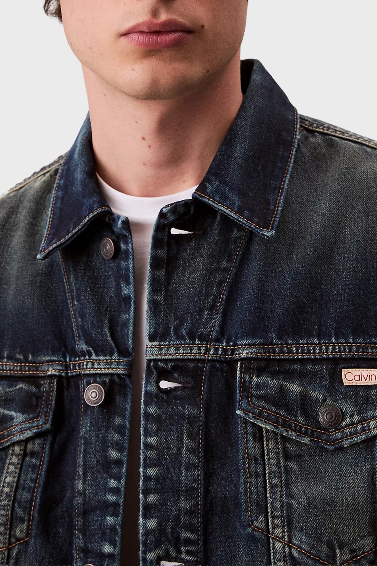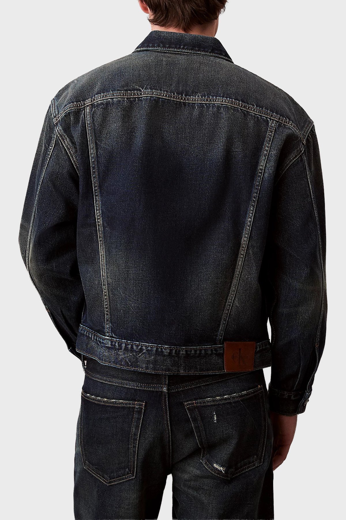 Logolu % 100 Pamuk Relaxed Fit LV04RD741GZYC Erkek Kot Ceket LV04RD741G ZYC LACİVERT
