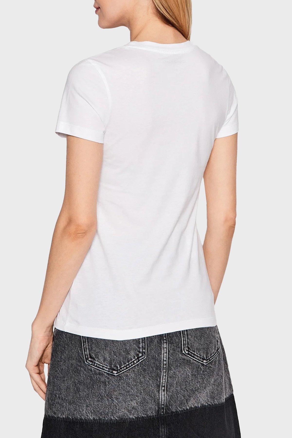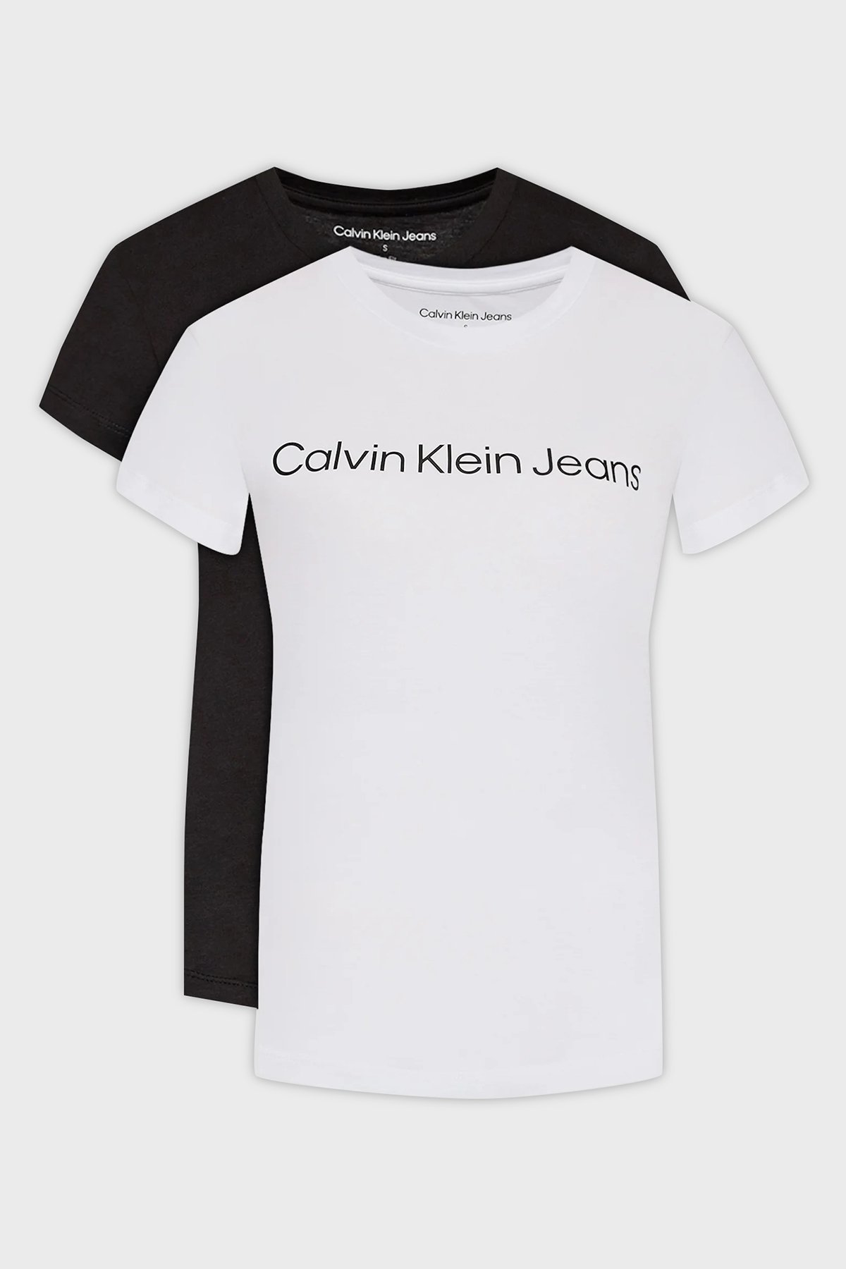 Logolu % 100 Pamuk Slim Fit Bisiklet Yaka 2 Pack J20J220161YAF Bayan T Shirt J20J220161 YAF BEYAZ-SİYAH