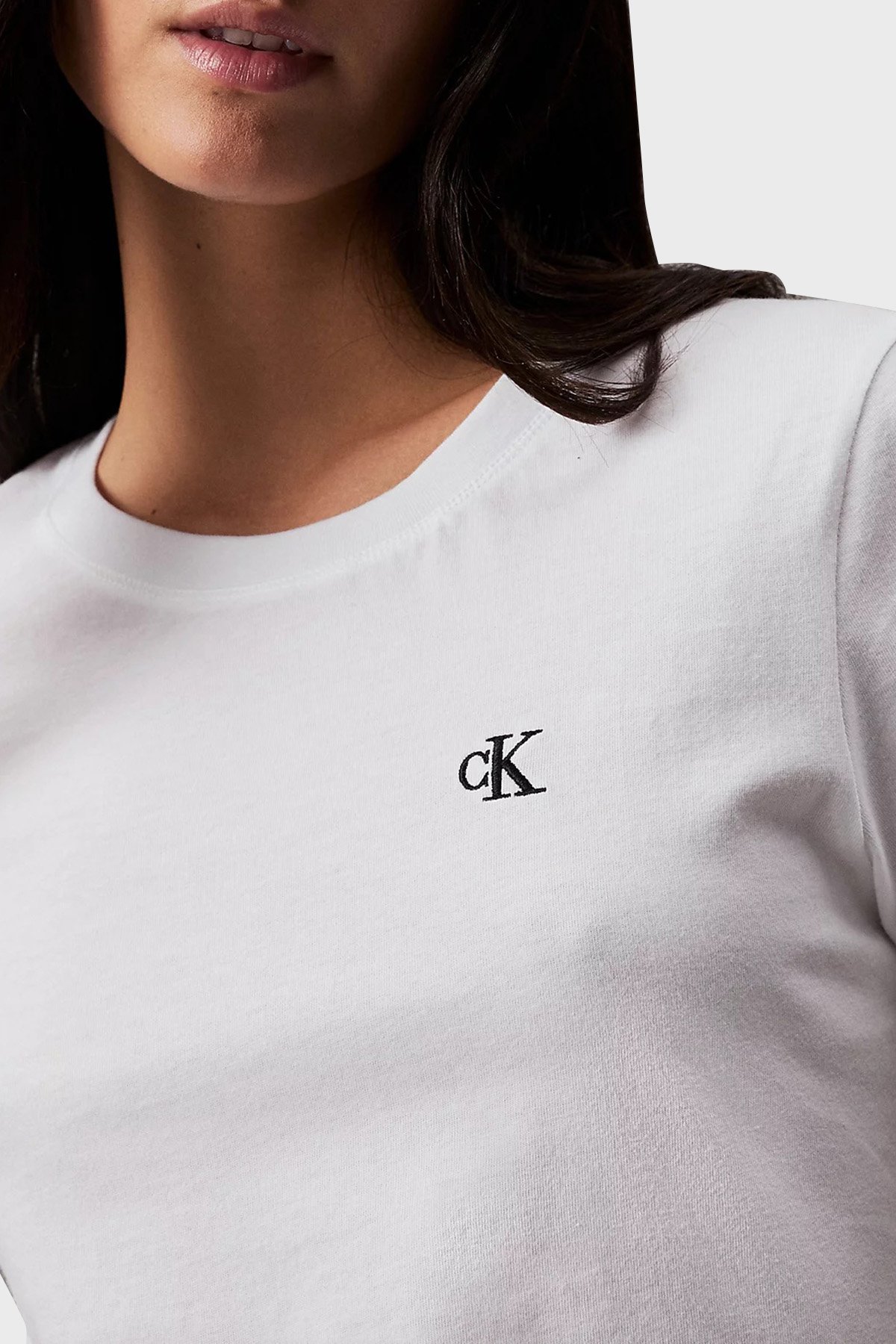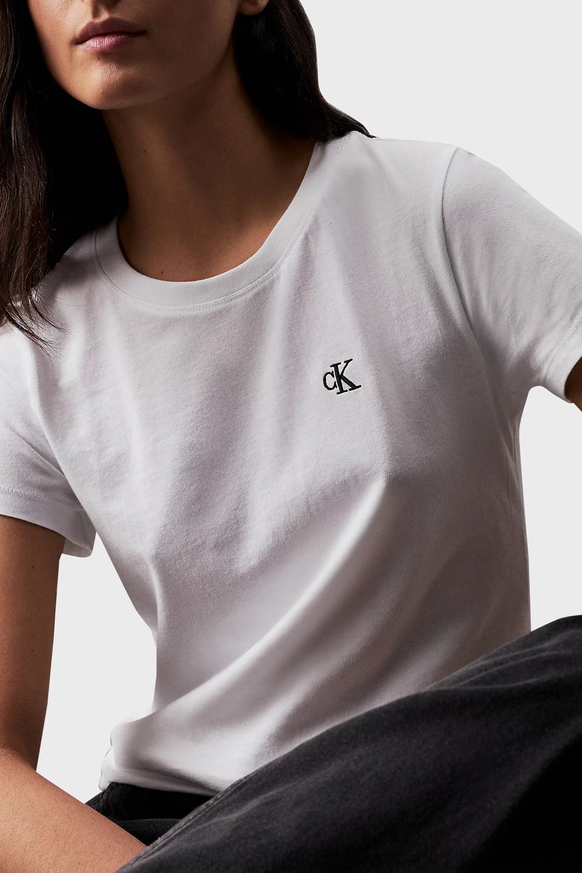 Logolu % 100 Pamuk Slim Fit Bisiklet Yaka J20J212883YAF Bayan T Shirt J20J212883 YAF BEYAZ