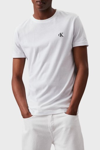 Logolu % 100 Pamuk Slim Fit Bisiklet Yaka J30J314544YAF Erkek T Shirt J30J314544 YAF BEYAZ