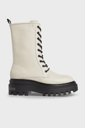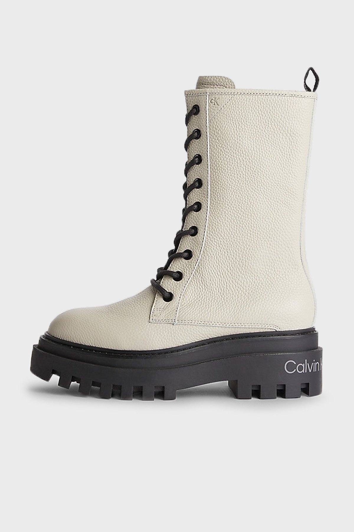 Logolu Bağcıklı Deri Bayan Bot YW0YW00843 ACF BEJ