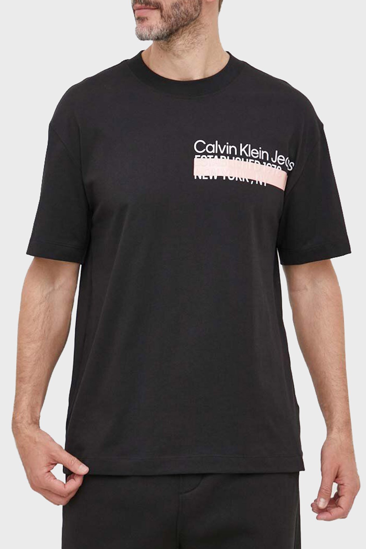 Logolu Bisiklet Yaka % 100 Pamuk Oversize J30J323522BEH Erkek T Shirt J30J323522 BEH SİYAH