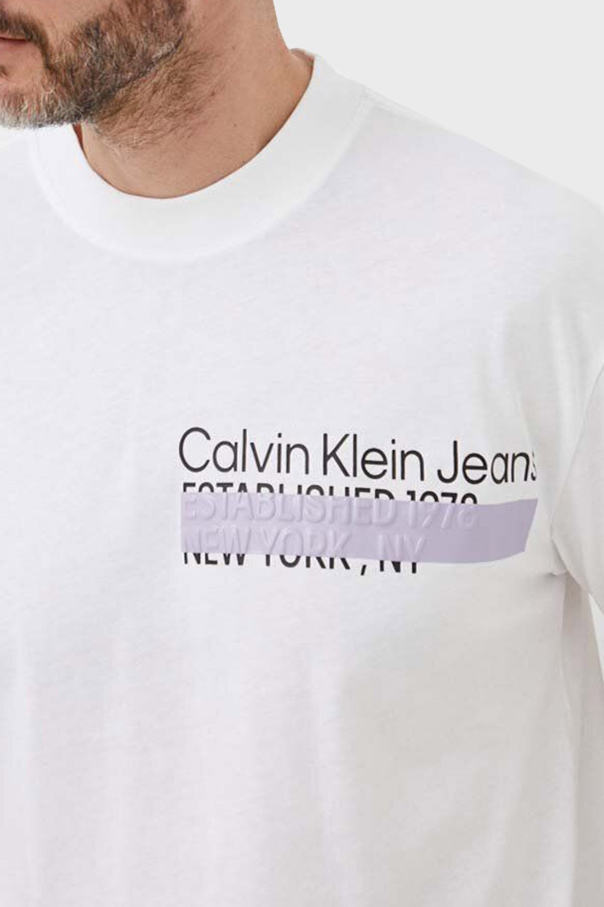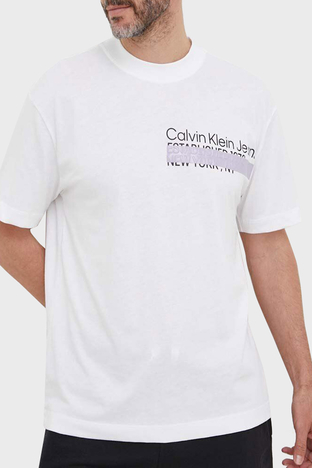 Logolu Bisiklet Yaka % 100 Pamuk Oversize J30J323522YAF Erkek T Shirt J30J323522 YAF BEYAZ