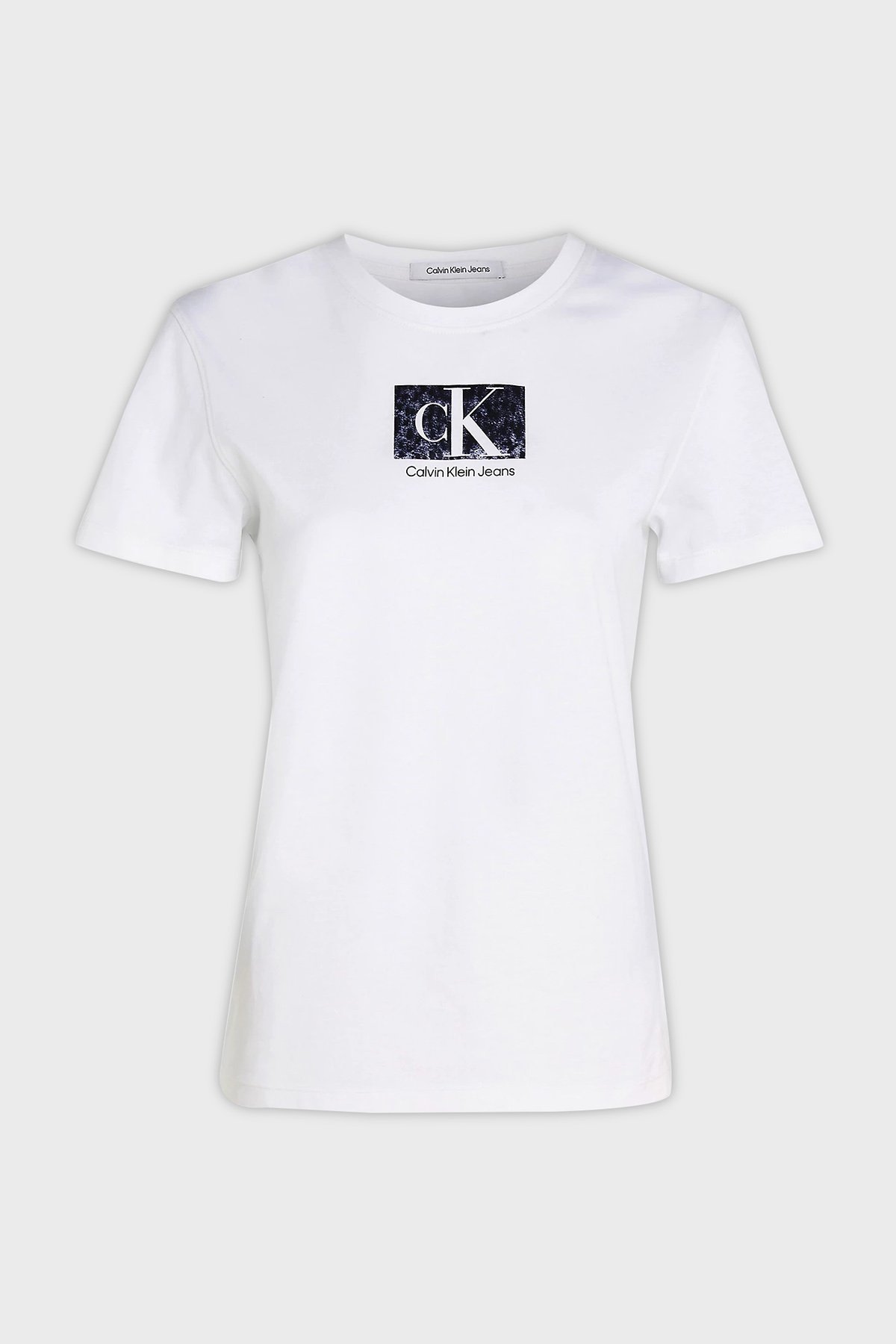 Logolu Bisiklet Yaka % 100 Pamuk Regular Fit J20J221631YAF Bayan T Shirt J20J221631 YAF BEYAZ