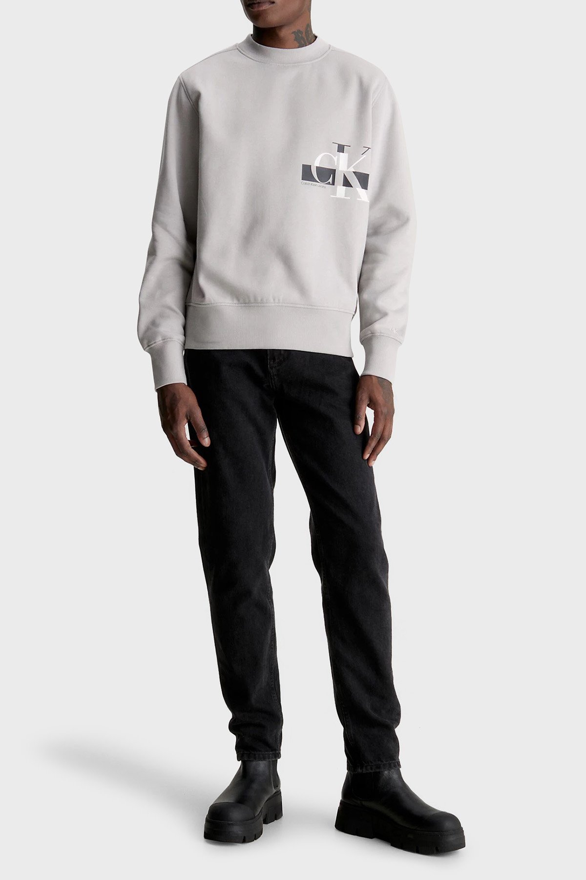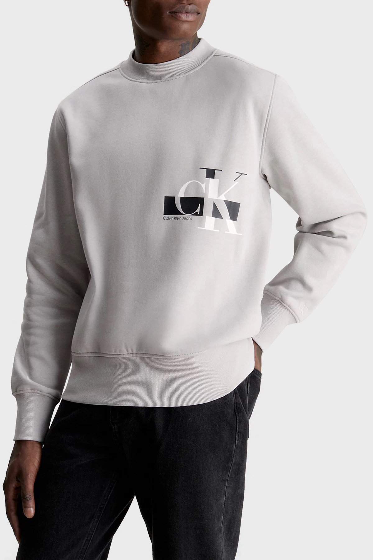 Logolu Bisiklet Yaka Pamuklu Regular Fit J30J324092PEE Erkek Sweat J30J324092 PEE GRİ